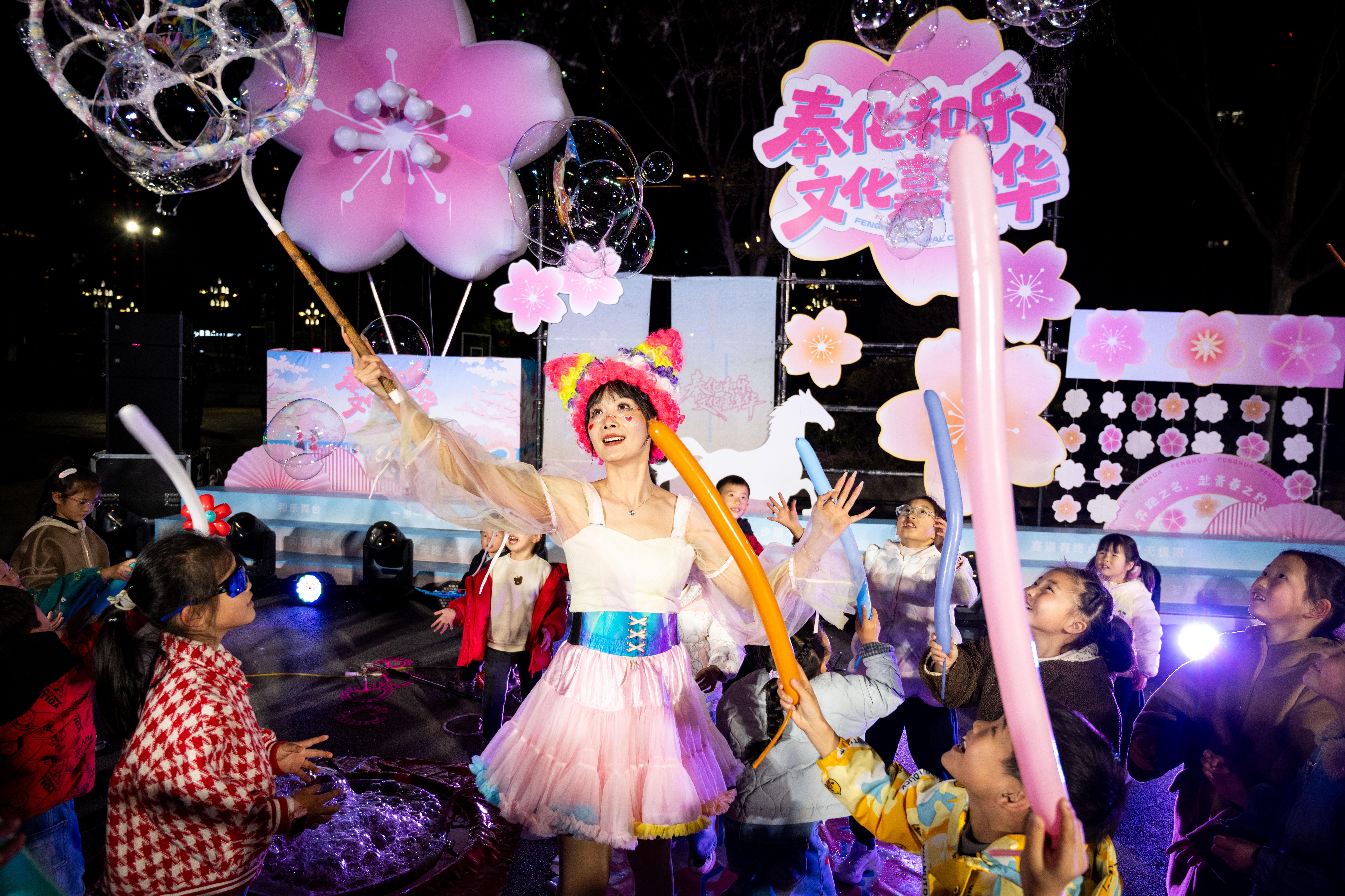 本届赛事以“桃马 越跑越欢喜”为主题,赛道线路串联起奉化城市文化中心、“天下第一桃园”林家村、“全球生态500佳”滕头村、弥勒圣坛、溪口武岭门、剡溪沿江风光带等20余个核心文旅地标。沿途设置的87个氛围点,将奉化人文风情融入奔跑节奏,从国家级非遗“奉化布龙”的腾挪翻转,到现代街舞的动感节奏,让跑者在移步换景中,沉浸式体验“最美赛道”的独特魅力。