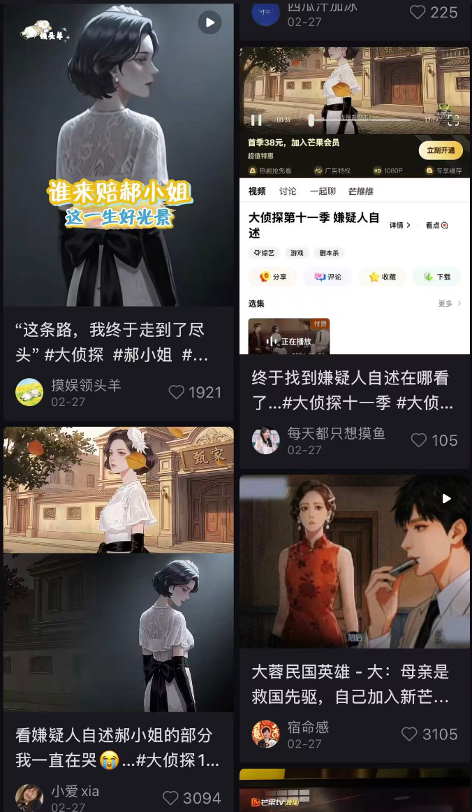 《大侦探》系列节目制片人晏吉表示,这是芒果TV在AI与内容主业协同方面的一次具体实践。AI在特定内容场景下,已能够更高效地参与衍生内容生产,并为内容团队提供新的创作工具和生产方法。AI技术的成熟为这类内容的开发带来显著杠杆效应,能够在成本可控的前提下快速、稳定地提供新的视角与新的内容呈现形式,也提供了内容与用户互动的新的想象空间。