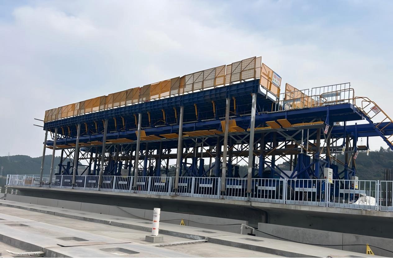 在雨棚台车的加工与拼装过程中,项目部派驻专人驻场盯控,从原材料进场到构件焊接、从拼装精度到液压系统调试严格把关,确保每一个环节符合设计规范。在拼装过程中,建设者连续20天奋战,将雨棚台车精准就位,其结构稳定性和行走系统均通过了严苛的测试验收。