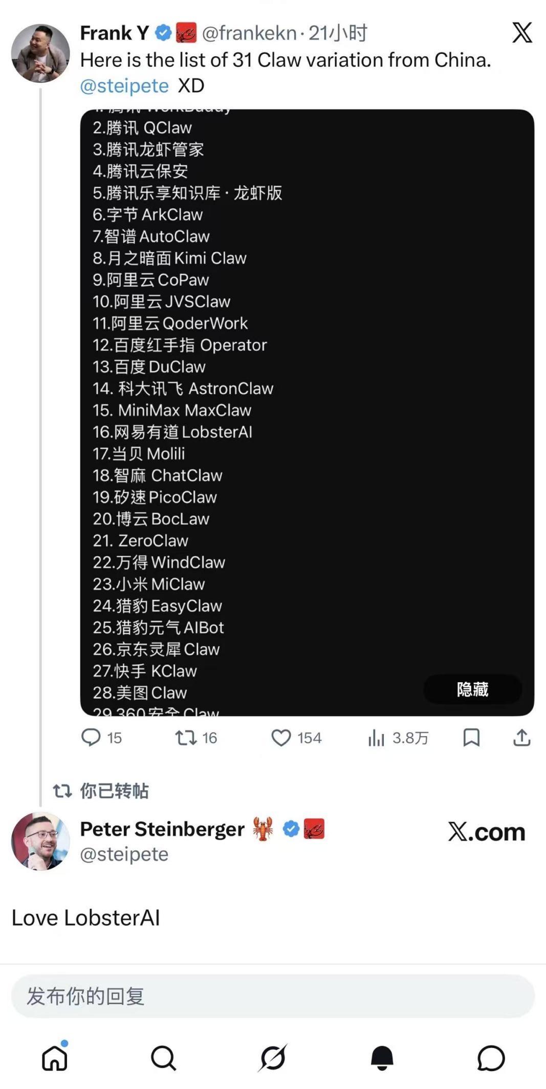 日前,全球爆火的AI Agent开源项目OpenClaw创始人Peter Steinberger在海外社交平台上公开发声,点赞有道桌面级Agent产品LobsterAI(有道龙虾),直言“Love LobsterAI”。