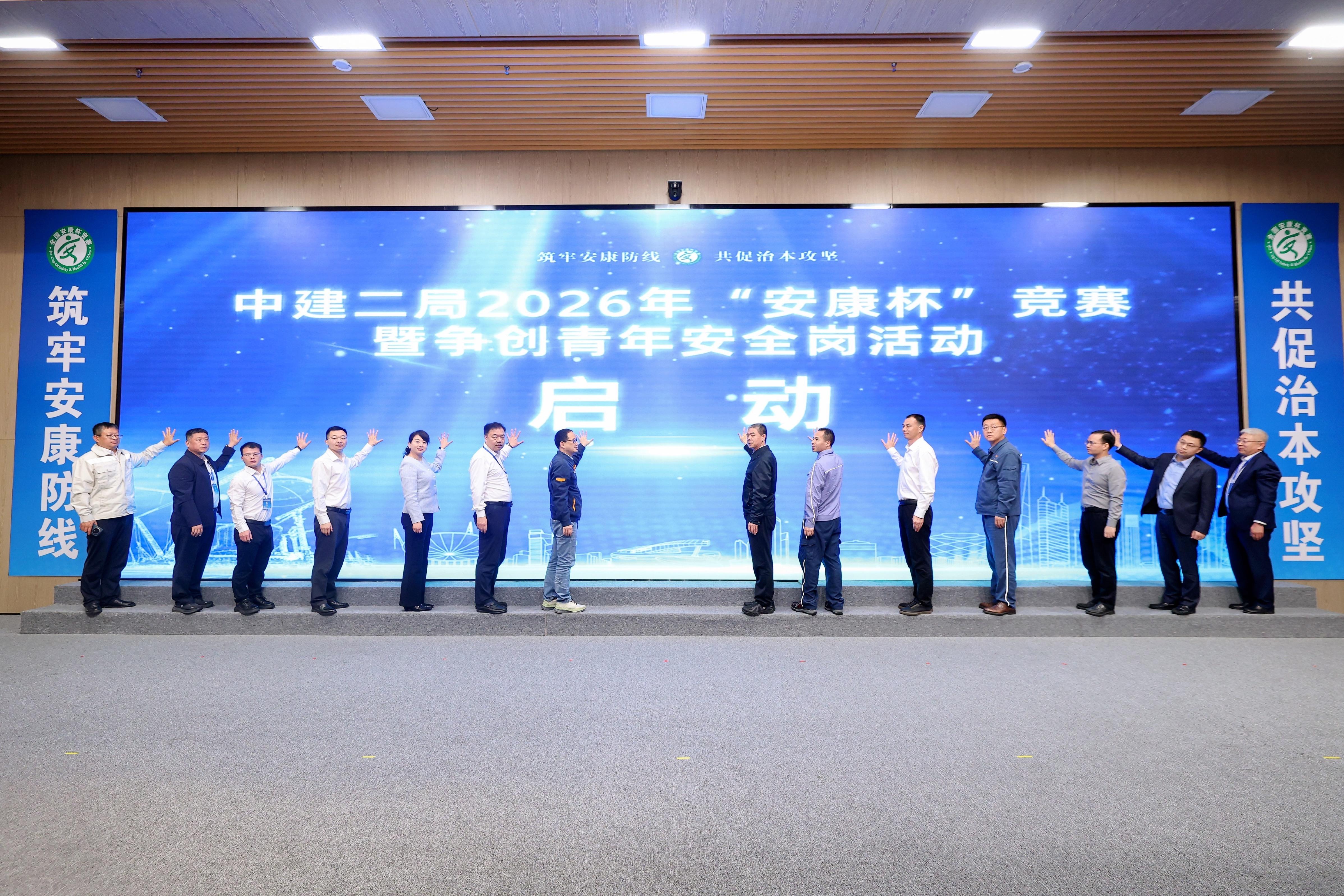 来自生态环境部华南核与辐射安全监督站、广东省总工会、深圳市总工会、惠州市总工会,以及中广核相关单位、中建集团等单位的代表共同启动了中建二局2026年“安康杯”竞赛暨争创青年安全岗活动。