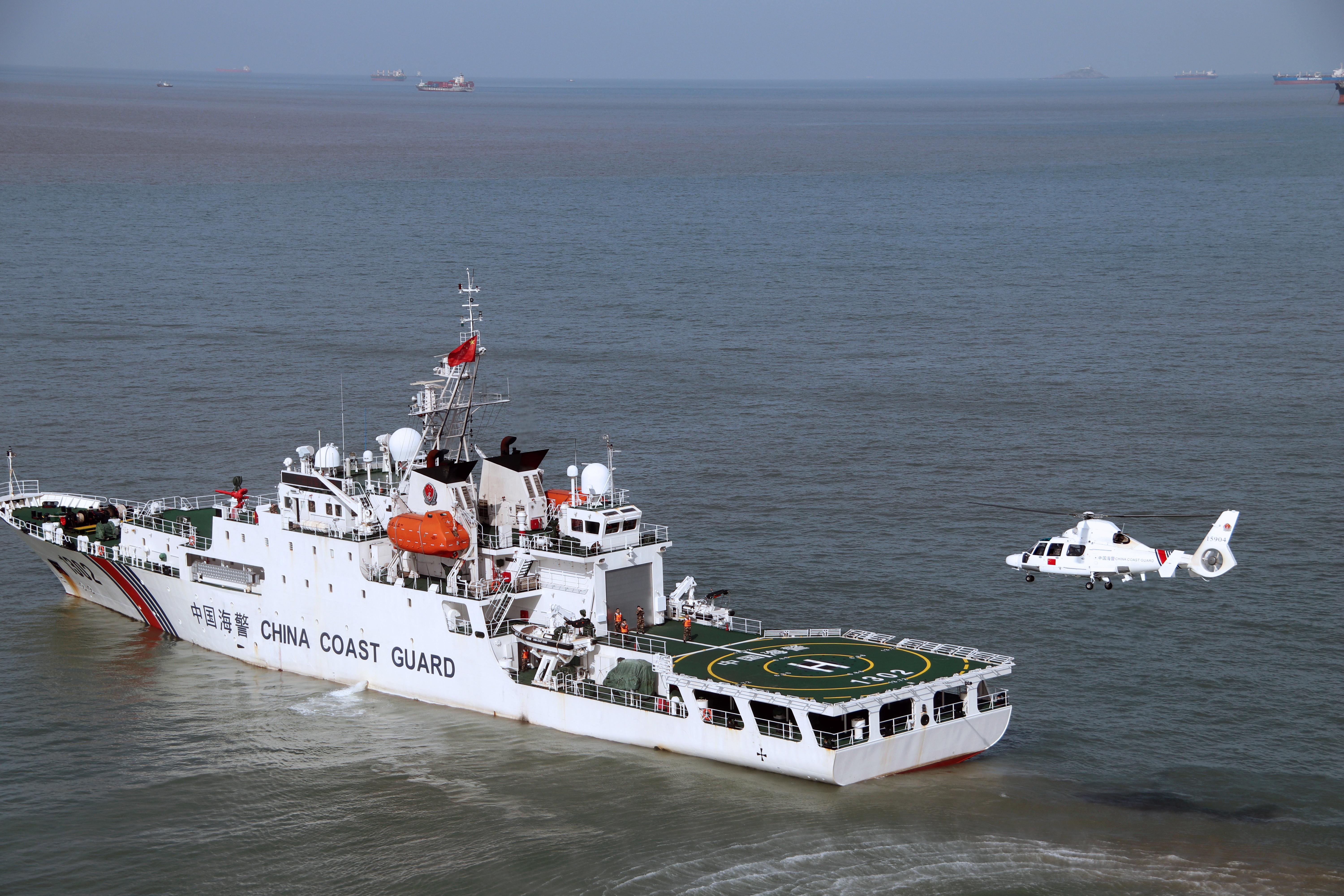 在东海某海域,由多艘舰艇组成的编队开展综合执法训练,对目标船舶进行识别、查证与警示驱离,有效检验舰艇协同配合、临机处置和依法履职能力。