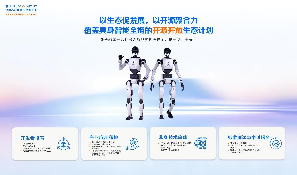 目前,北京人形已在开源领域取得扎实成果,围绕“具身天工”“慧思开物”两大平台,开源多项核心技术,相关成果下载量超200万次。同时,中心牵头制定多项国家及国际标准,建成中试基地与全链路检测体系,以标准化引领行业规范发展。