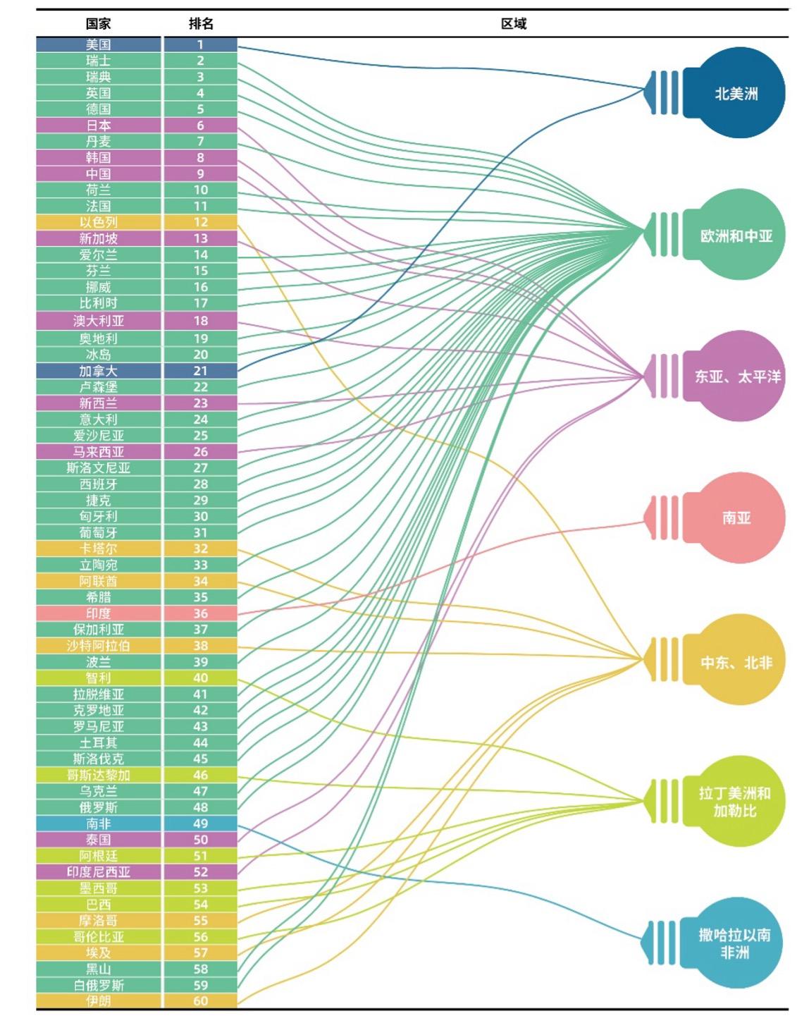 报告还显示,美国2012年综合排名第2位,2013年以来一直排名第1位。欧洲的瑞典、英国、德国综合排名上升,2025年分别排名第3位至第5位。
