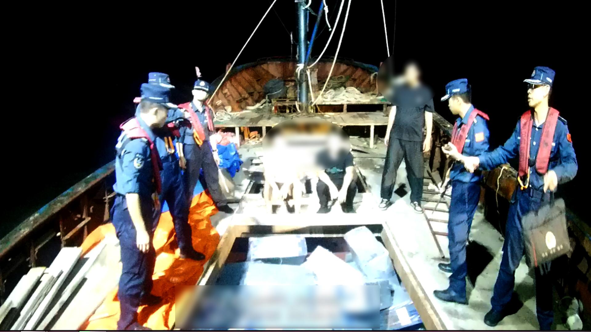 一切的源头,要追溯到2025年4月29日的深夜。浙江台州海警局执法艇在浙江三门附近海域巡逻时,发现一艘无船名船号且非法改装的渔船,正借着夜色悄然航行。更不寻常的是,船体吃水异常深,船舷几乎贴近海面,这一反常迹象瞬间引起了海警执法员的高度注意。