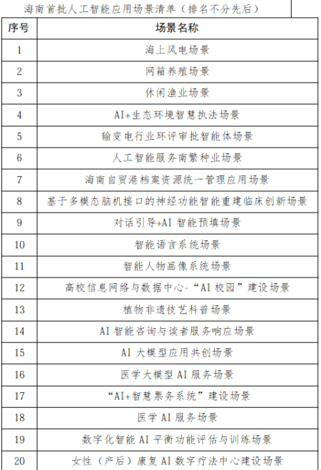 记者从海南省大数据发展中心获悉,在3月29日召开的海南自由贸易港民营企业座谈会上,该中心正式发布2026年首批共30个人工智能应用场景清单,诚邀全国企业、科研机构等单位共同参与场景建设,携手培育发展新质生产力。