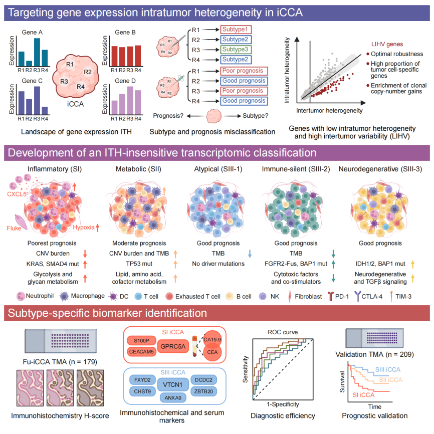 据悉,该研究构建出从分子分型、预后判断、生物标志物到精准治疗的闭环,研究中首次提出的能够抵抗肿瘤异质性的分型框架,也将为后续开展不同亚型的肝内胆管癌临床试验奠定重要基础。