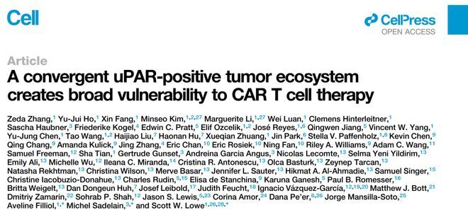 张则达等研究者的这一成果提出了一种新的路径:不再仅靶向某一类细胞,而是靶向一种“危险的细胞状态”。这一状态由关键分子uPAR所标记。uPAR(尿激酶型纤溶酶原激活物受体)是一种细胞表面蛋白,在正常组织中表达较低,但在肿瘤中却被广泛激活。更重要的是,它不仅出现在肿瘤细胞上,也存在于肿瘤周围的支持性细胞中,包括成纤维细胞和免疫抑制性髓系细胞。这些细胞共同构建了一个有利于肿瘤生长的“生态系统”。因此,uPAR不仅是一个肿瘤标志物,更是一个肿瘤生态位的标记,这是其区别于传统靶点的关键特征。