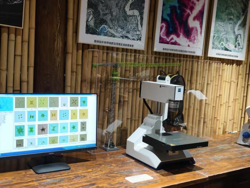 沿阶梯缓步下行,一只栩栩如生的圆鼻巨蜥模型映入眼帘,神态灵动逼真。再往前走,耳畔传来蝙蝠的声响,抬头就能看见忽明忽暗的洞穴里有黑影拂过。这里便是“魅力雨林”主题区,展区采用活体植物与仿真造景相结合的方式,还原西双版纳热带雨林原生生态,带领观众观察热带雨林里奇特的生命现象、体验专业的科考设备与雨林科学研究方法。展区内的“雨林小屋”陈列着红外相机、热感应相机、光合仪、显微镜等一线科考设备,带领观众近距离感受科研工作者的真实工作场景。