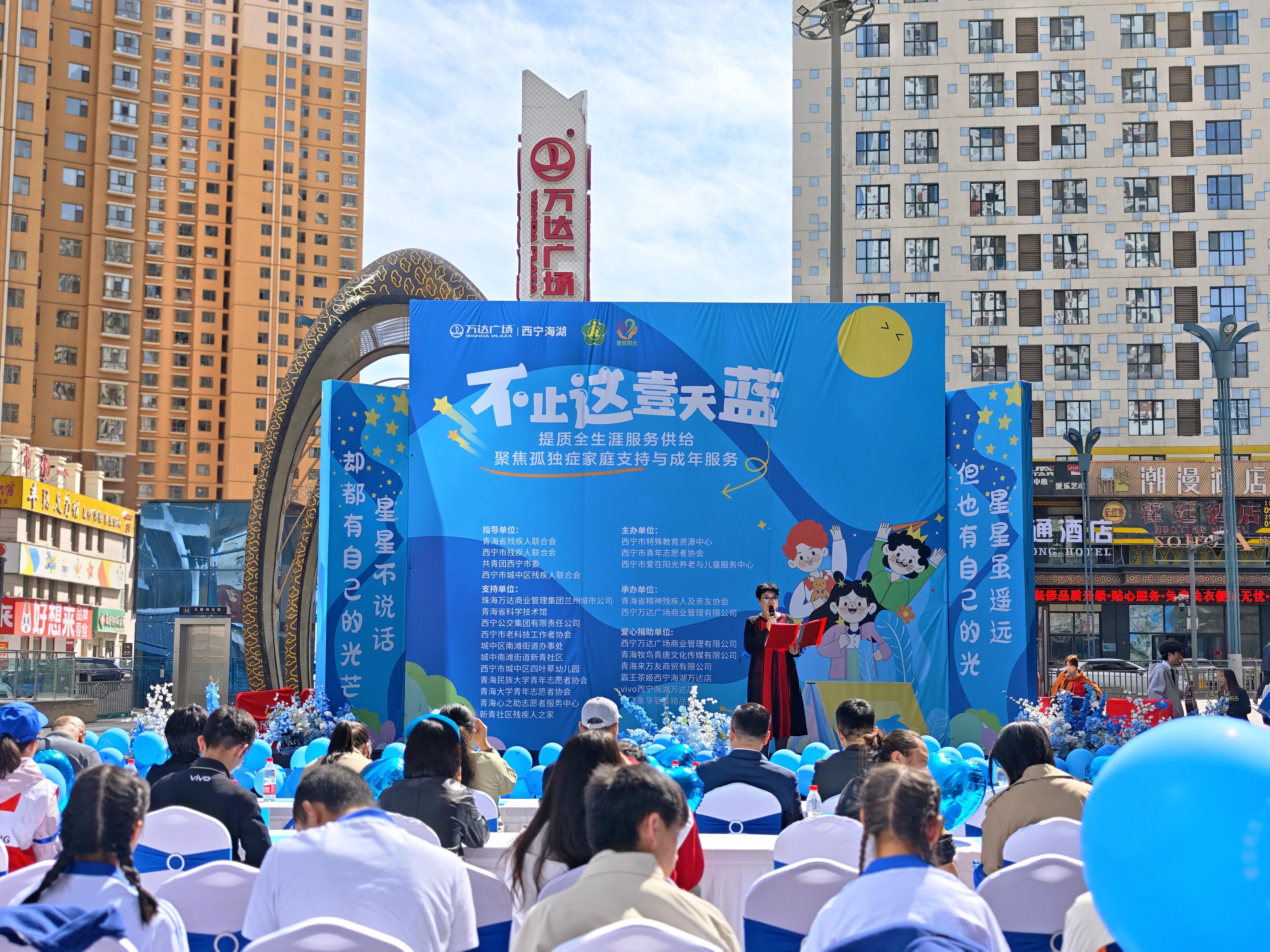 当日,蓝丝带与蓝气球在主题公益活动举办地西宁海湖万达广场汇成希望的海洋。全场人员手持蓝气球,发出关爱倡议:“尊重每一颗星,消除偏见与歧视。接纳每一种不同,传递善意与温暖。守护每一份期待,给予陪伴与支持……”