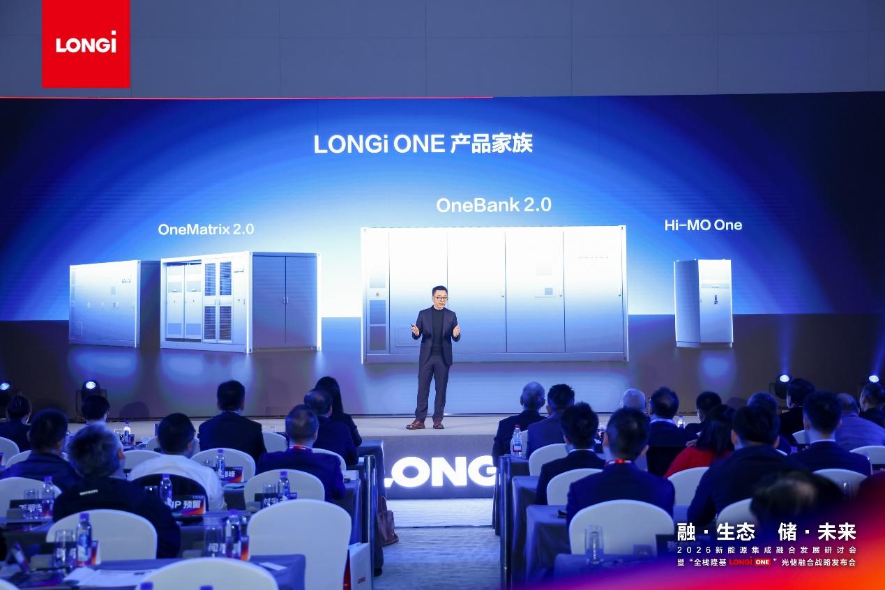 4月1日,隆基绿能在北京举行2026新能源集成融合发展研讨会,正式发布“全栈隆基 LONGi ONE”光储融合战略,通过全栈自研的原生融合技术,打造效率与安全并重的“阳光发电机”,提供覆盖全场景的光储一体化解决方案,可更高效、安全地提供绿电。
