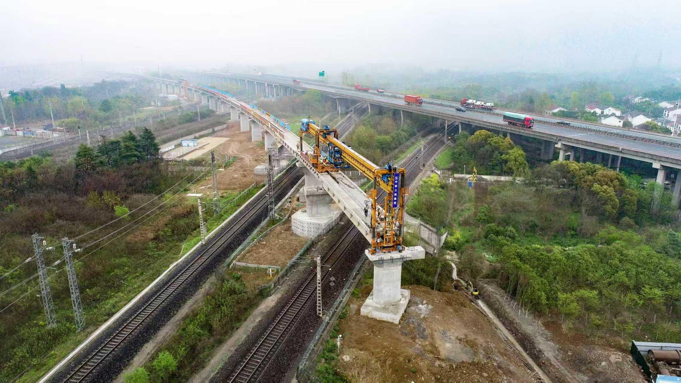 4月3日,随着最后一孔T梁精准落位,沪宁合高铁南京枢纽改建京沪客车上行线特大桥上跨五条既有铁路架梁施工顺利完成。