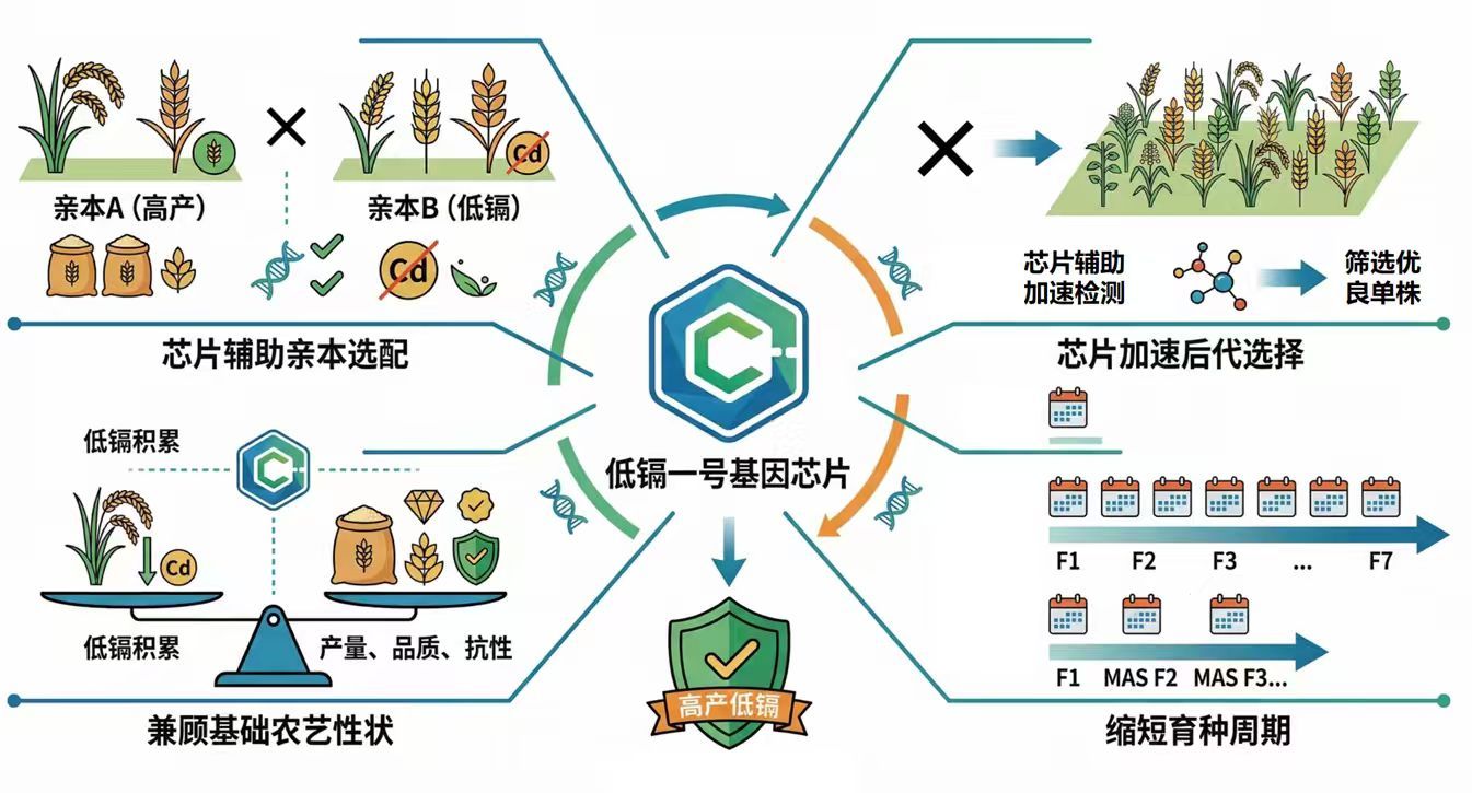 目前,“低镉1号”已完成成果转化签约,可满足大规模小麦样本检测需求。廖晓勇表示,该芯片的研发与应用,可助推我国小麦低镉品种选育从传统方式向高效化、智能化跨越,为我国小麦品种定向选育与资源高效利用提供有力技术支撑,保障国家粮食安全与绿色健康生产。