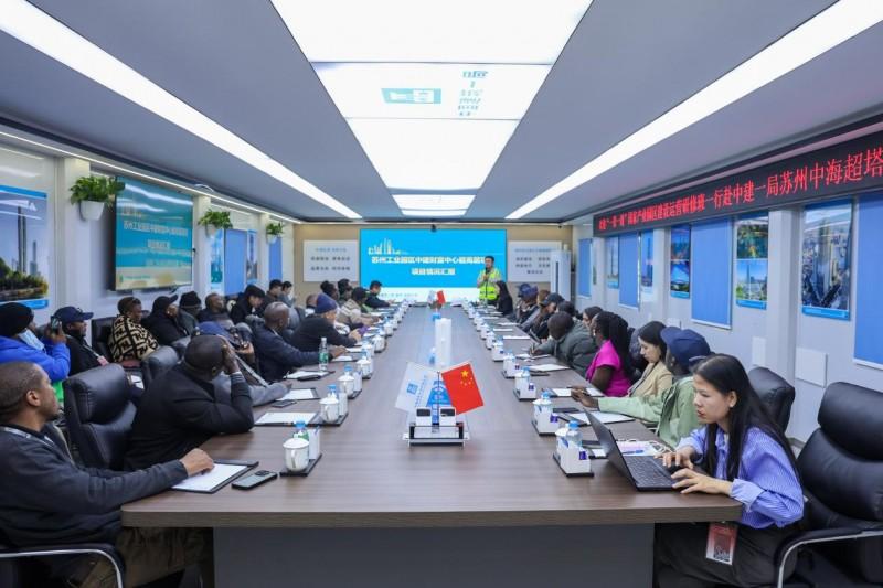 近日,来自八个国家的政府与企业代表齐聚江苏省苏州市,走进中建一局承建的中海苏州超塔项目现场,开展观摩交流。活动旨在搭建跨国建筑领域对话平台,共享可持续发展与高质量建设的经验。