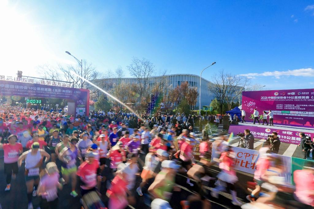 4月6日,2026中国田径协会10公里精英赛(北京·海淀站)在中关村国家自主创新示范区展示交易中心鸣枪起跑。