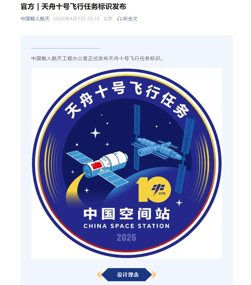 中国载人航天工程办公室正式发布天舟十号飞行任务标识。