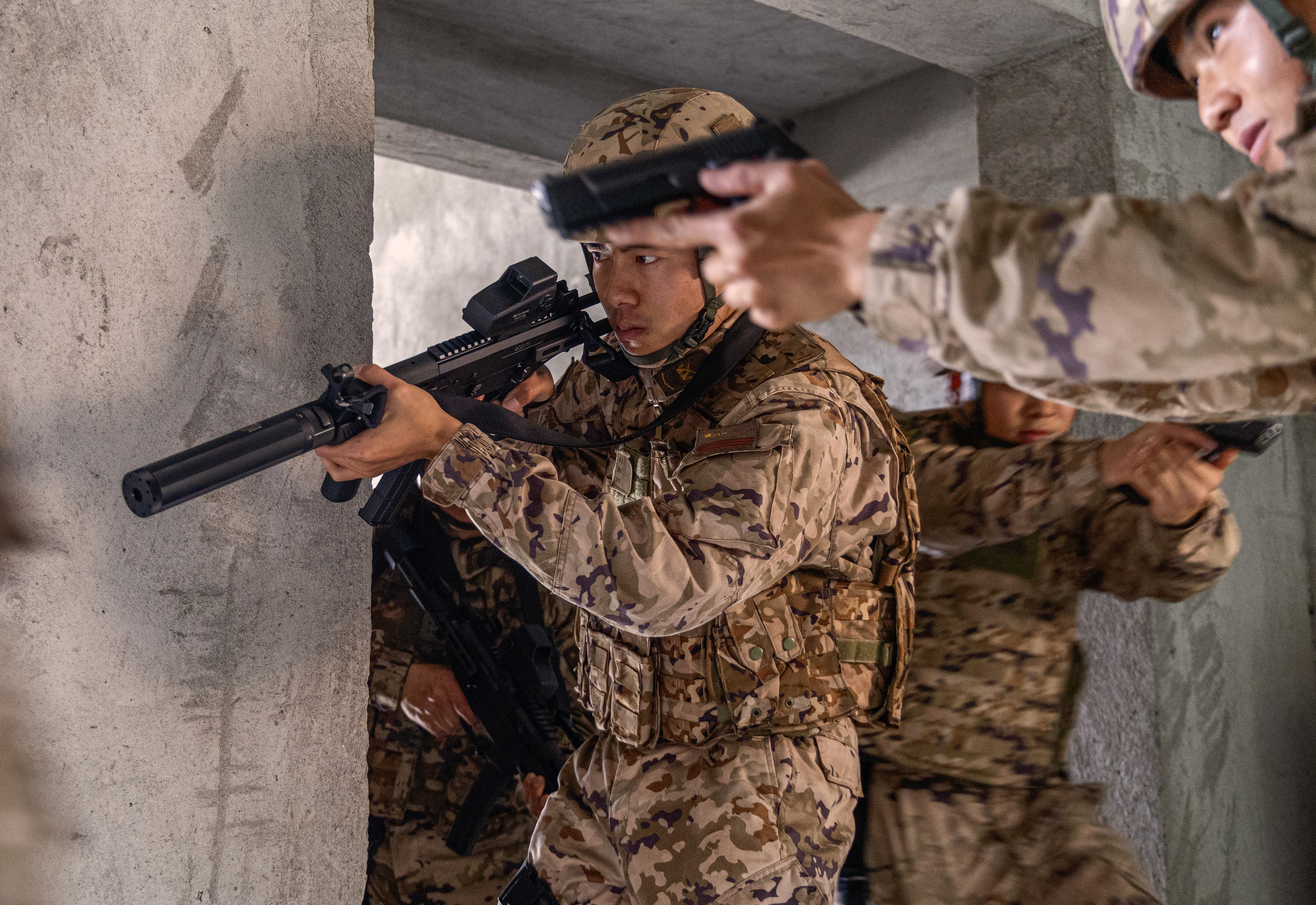 近日,武警广西总队来宾支队围绕捕歼战斗演练、小组协同战术等课目,组织官兵开展实战化军事训练,进一步锤炼官兵在复杂环境下的综合作战能力,为今后遂行多样化任务奠定坚实基础。