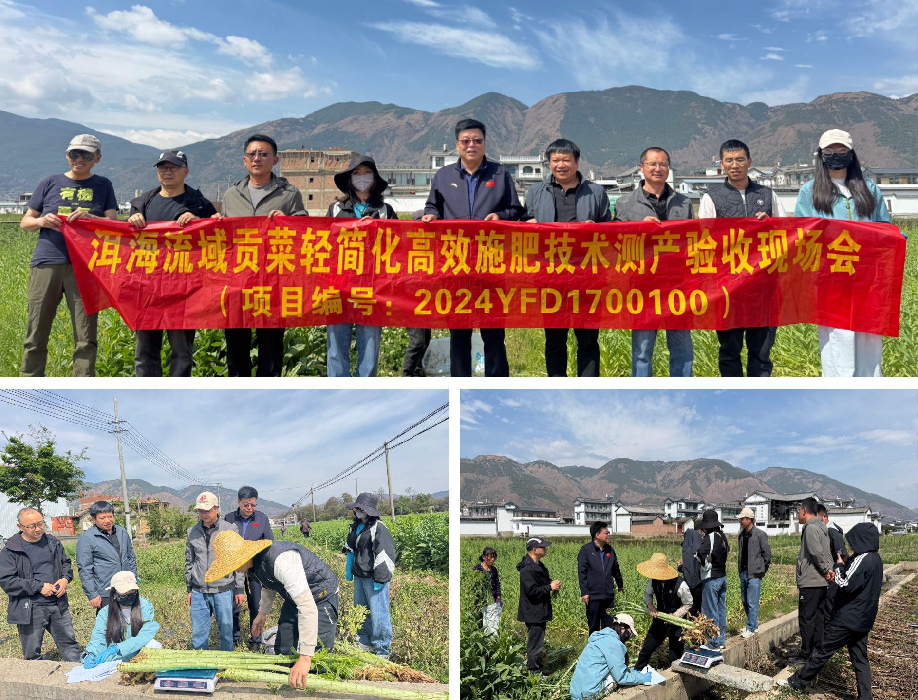 日前,云南省农业科学院农业环境资源研究所植物营养与肥料研发创新团队组织相关专家,对农业农村部环境保护科研监测所牵头承担的“重要湖库流域面源污染监测防控”项目“洱海流域贡菜轻简化高效施肥技术”开展现场测产验收工作。