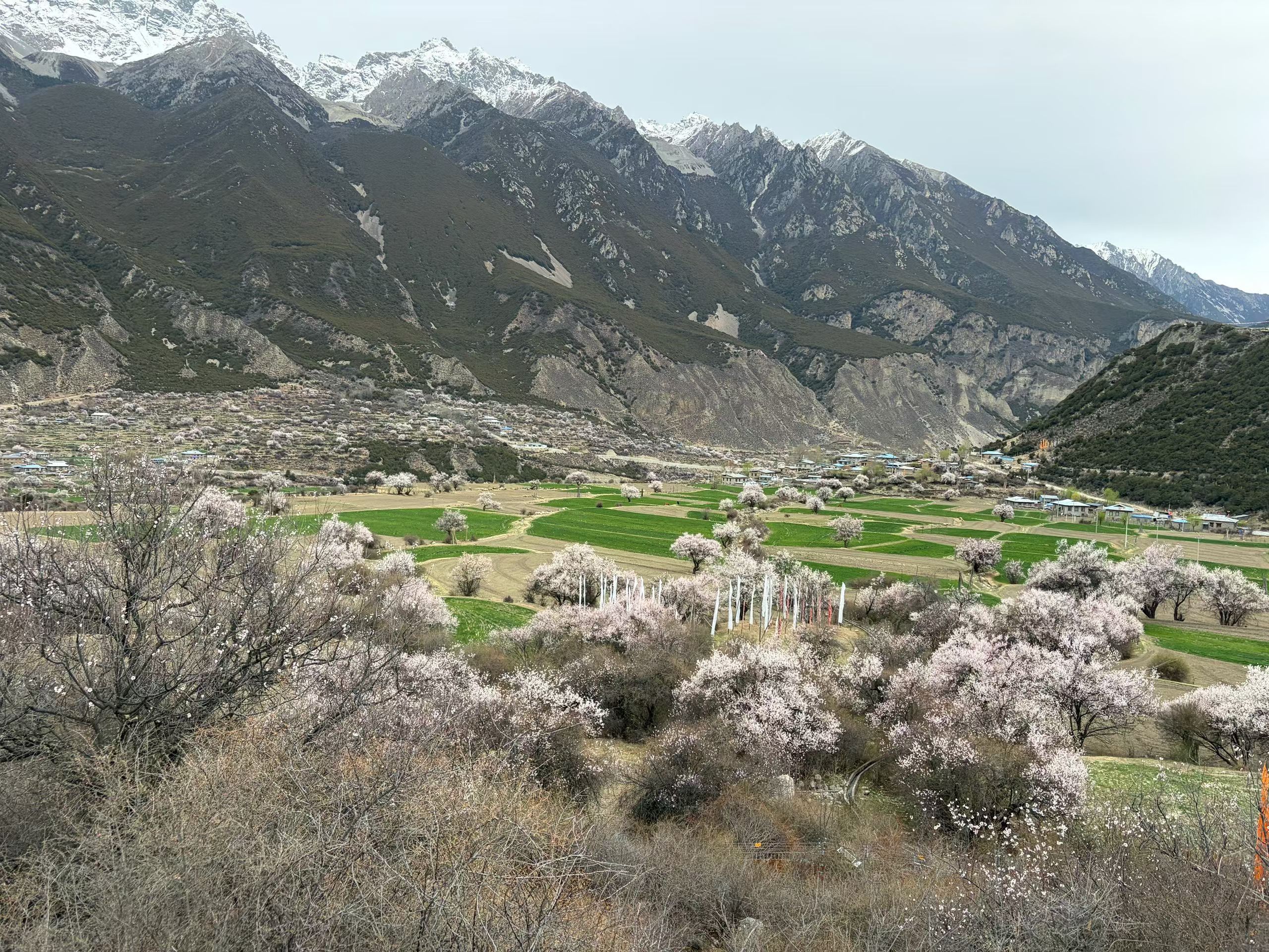 四月西藏林芝的桃花开得正旺,雅鲁藏布江畔的米林市羌纳乡巴嘎村比往年热闹许多。记者从林芝出发沿着岗派公路走进村子,老远就听见文化广场上传来阵阵笑声和锅庄舞的音乐声。村委会院子里,十几位村民正围着驻村工作队员拉家常,你一言我一语,说得热火朝天。