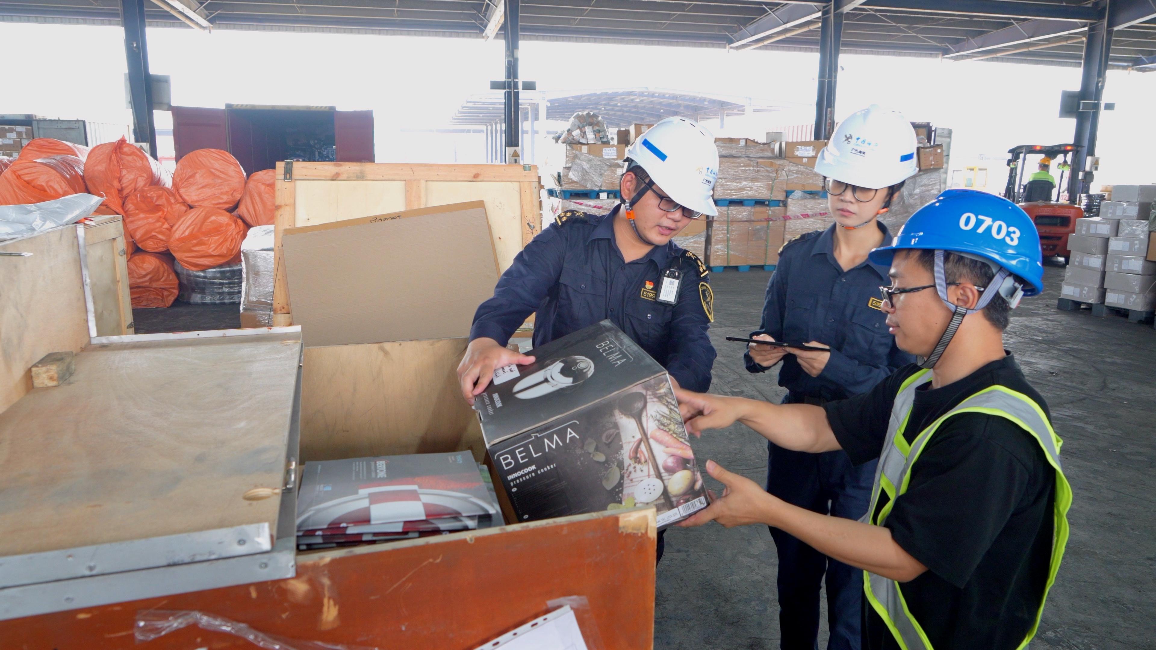 “南沙港是广交会进口展品的主要入境口岸之一。我们主动对接企业,第一时间掌握进境展品最新动态,提前协调码头方,为展品做好靠泊、装卸准备,优先为参展企业办理审核、查验、抽样、检测等通关手续,确保进境展品全流程监管作业高效完成。”广州海关所属南沙海关南沙港查验科科长康乐介绍。