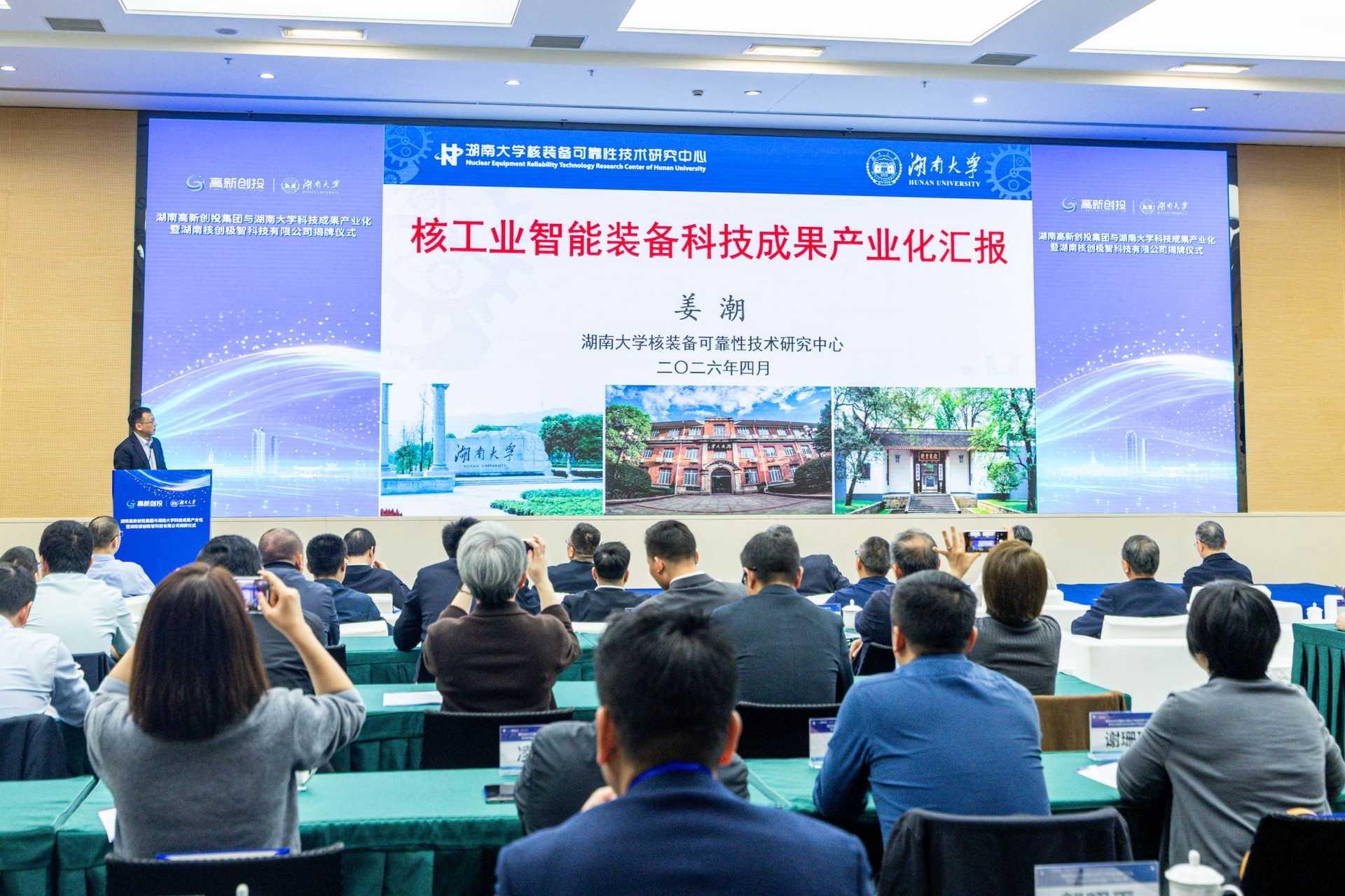 4月8日,“科技成果产业化暨湖南核创极智科技有限公司揭牌仪式”在湖南省长沙市举行。记者从会上获悉,湖南大学机械与运载工程学院教授姜潮团队自主研发的核工业智能装备等系列重大成果,将依托孵化成立的湖南核创极智科技有限公司进行转化。