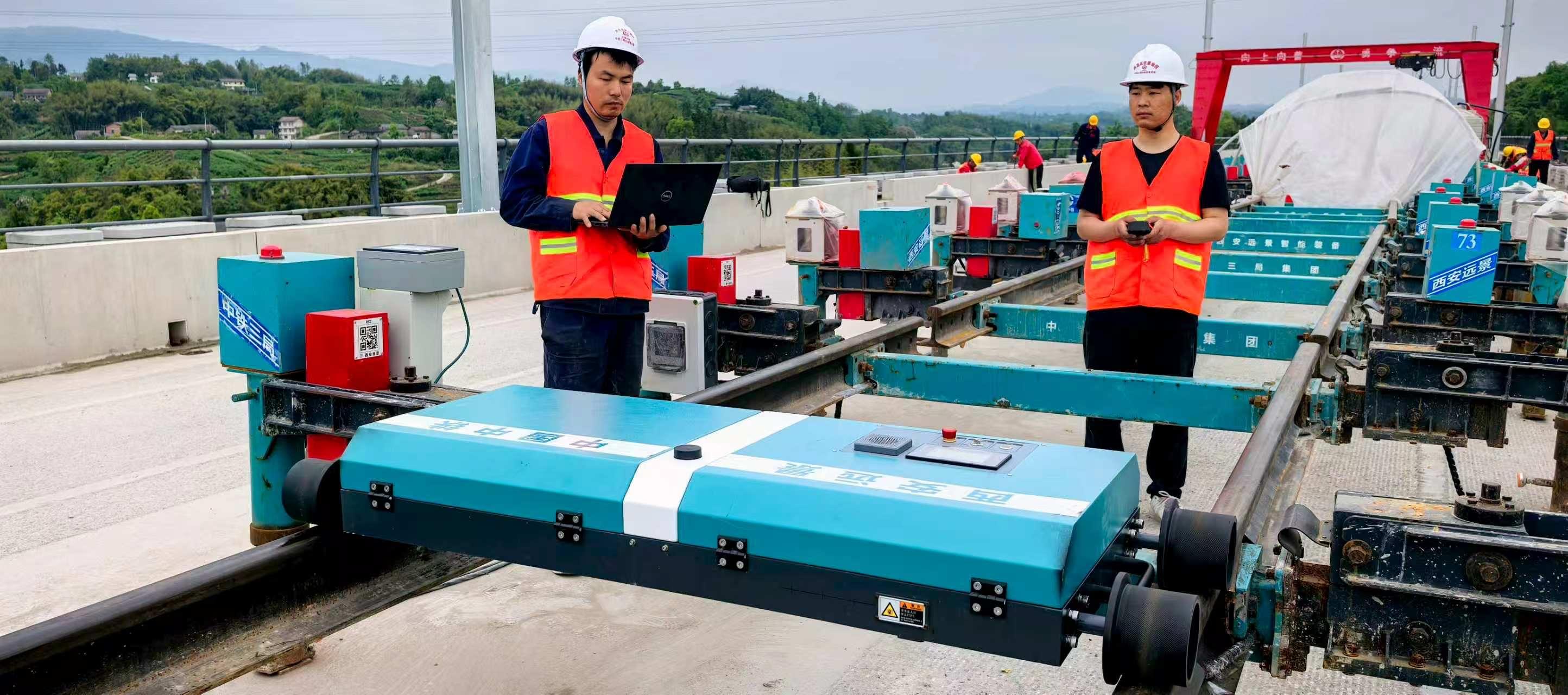 无砟轨道施工是铁路铺轨前的最后一道重要工序,质量要求高、精度控制严,需要毫米级精细施工。项目部建立了“专人专责+闭环改进”质量管控体系,设立专职质量监督员,全程紧盯各关键施工工序,确保每一处施工细节都经得起严格检验。“项目部加大智能化设备的投入,引入智能轨排精调机,该设备搭载TAS-4型智能化动力系统,采用‘测量-计算-执行’全链路自动化闭环架构,可将轨排精调误差严格控制在0.3毫米以内,确保了无砟轨道施工质量。同时,项目部还创新升级轨枕专用吊具,采用可调节限位装置,单次可精准吊装5根轨枕,确保轨排组装方正度,较传统吊具效率提升30%”。中铁三局无砟轨道施工负责人周伟介绍。