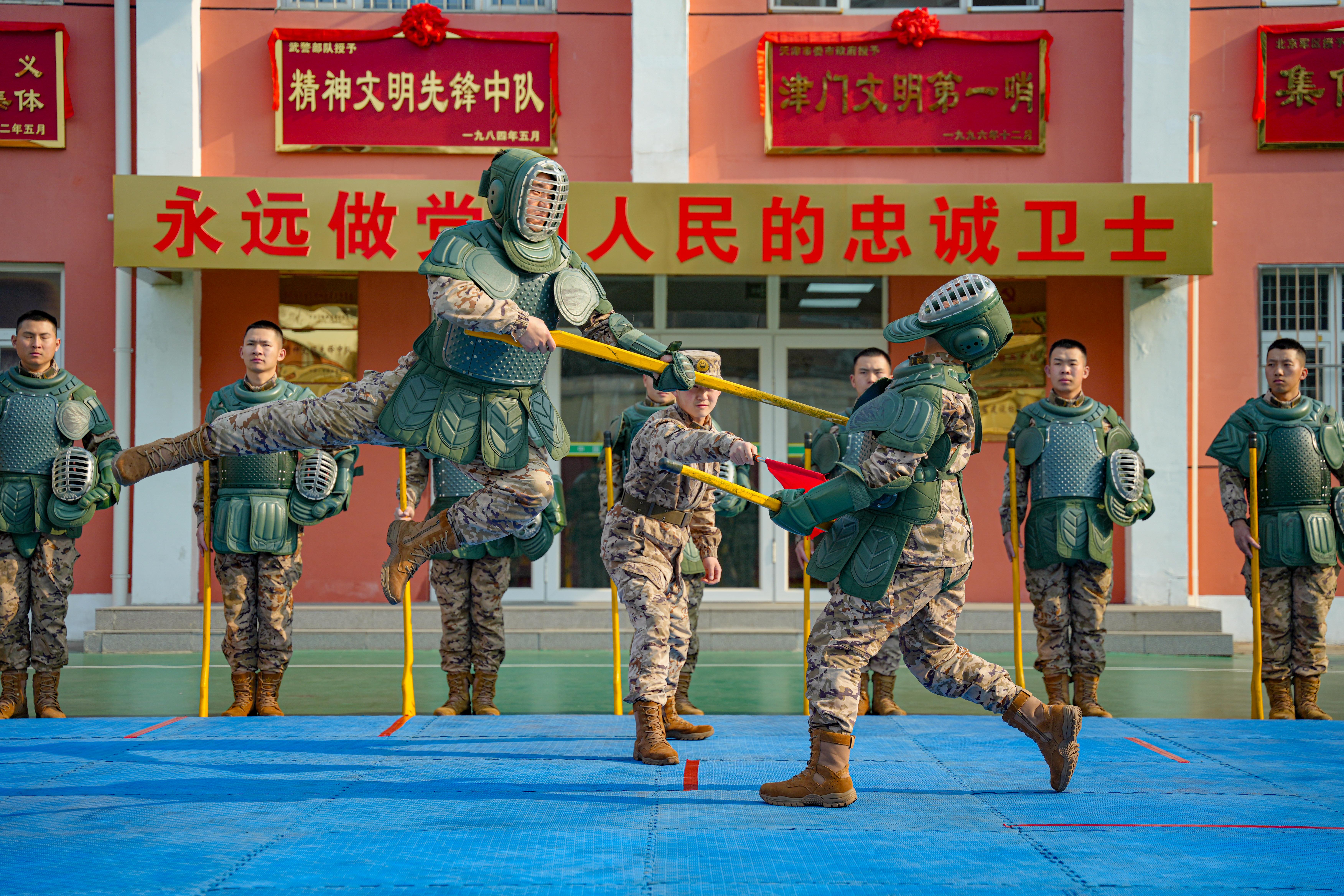 近日,武警天津总队执勤二支队紧抓春季练兵黄金期,以春光为令,以实战为纲,严密组织官兵开展刺杀对抗、战术协同、擒敌格斗等多课目强化训练,全面锤炼部队实战本领,持续掀起练兵备战热潮。