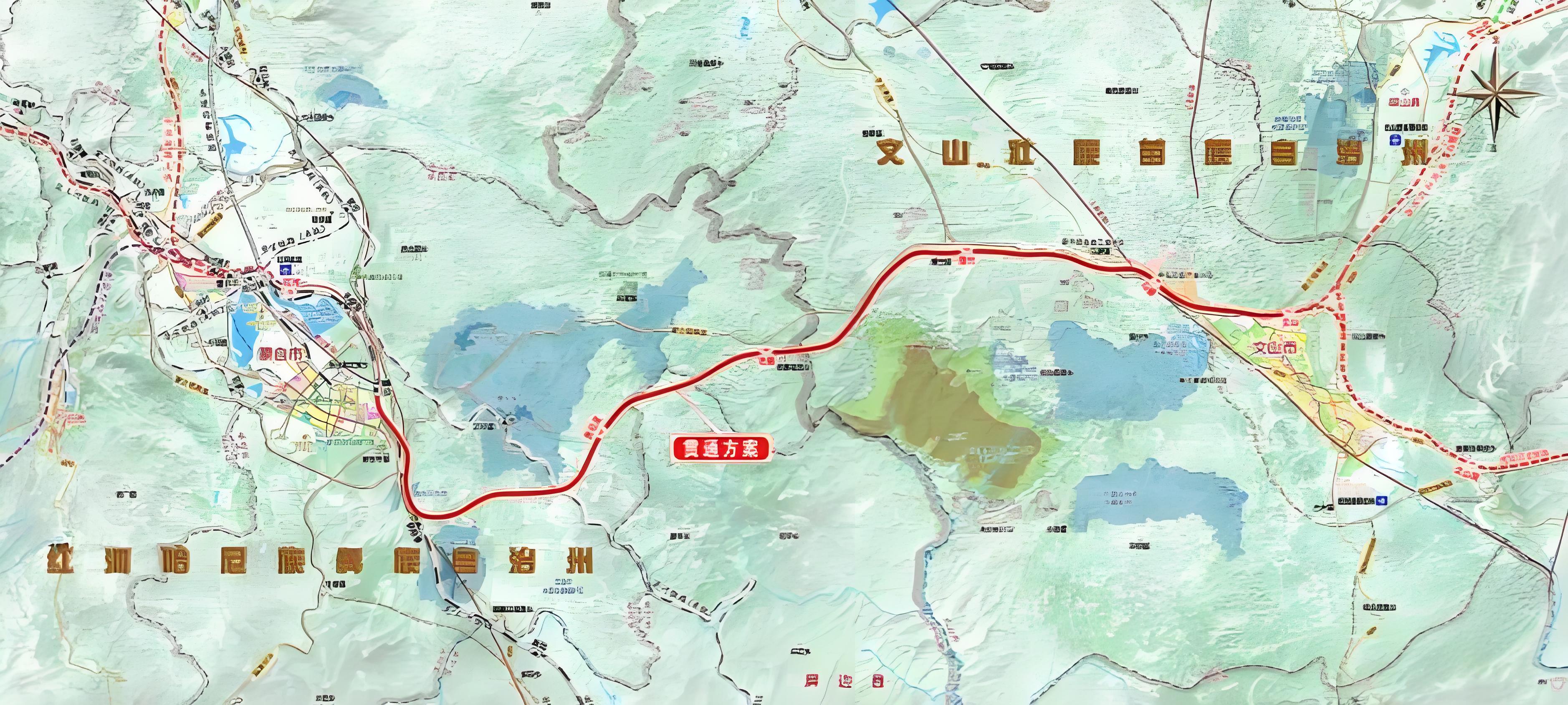 文山至蒙自铁路是国家中长期铁路网规划中西南沿边铁路的重要项目,也是《“十四五”铁路发展规划》战略骨干通道铁路项目——蒙自至靖西铁路的重要组成部分,全长约116公里,设计时速160公里,计划建设工期4.5年。