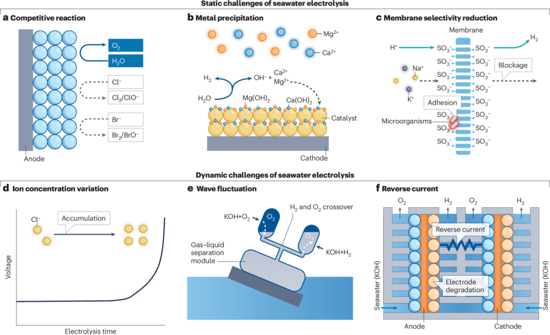 同时,绝大多数研究基于理想模拟海水体系开展,缺乏对真实海洋环境中海水成分波动、风浪扰动、盐雾腐蚀、可再生能源出力波动等多因素耦合作用的系统认知,导致实验室成果与工程化应用之间存在巨大鸿沟,成为制约海水制氢规模化落地的核心难题。