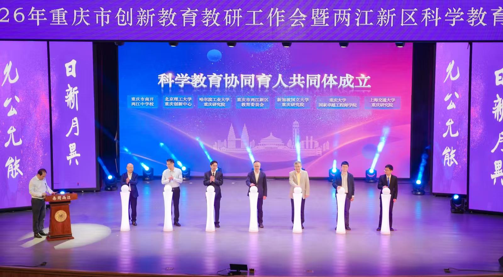 开幕式上,由两江新区教委联合新加坡国立大学重庆研究院、上海交通大学重庆研究院、哈尔滨工业大学重庆研究院、北京理工大学重庆创新中心、重庆大学国家卓越工程师学院、南开两江中学共同发起的“科学教育协同育人共同体”正式成立,标志着区域协同育人进入机制化新阶段。