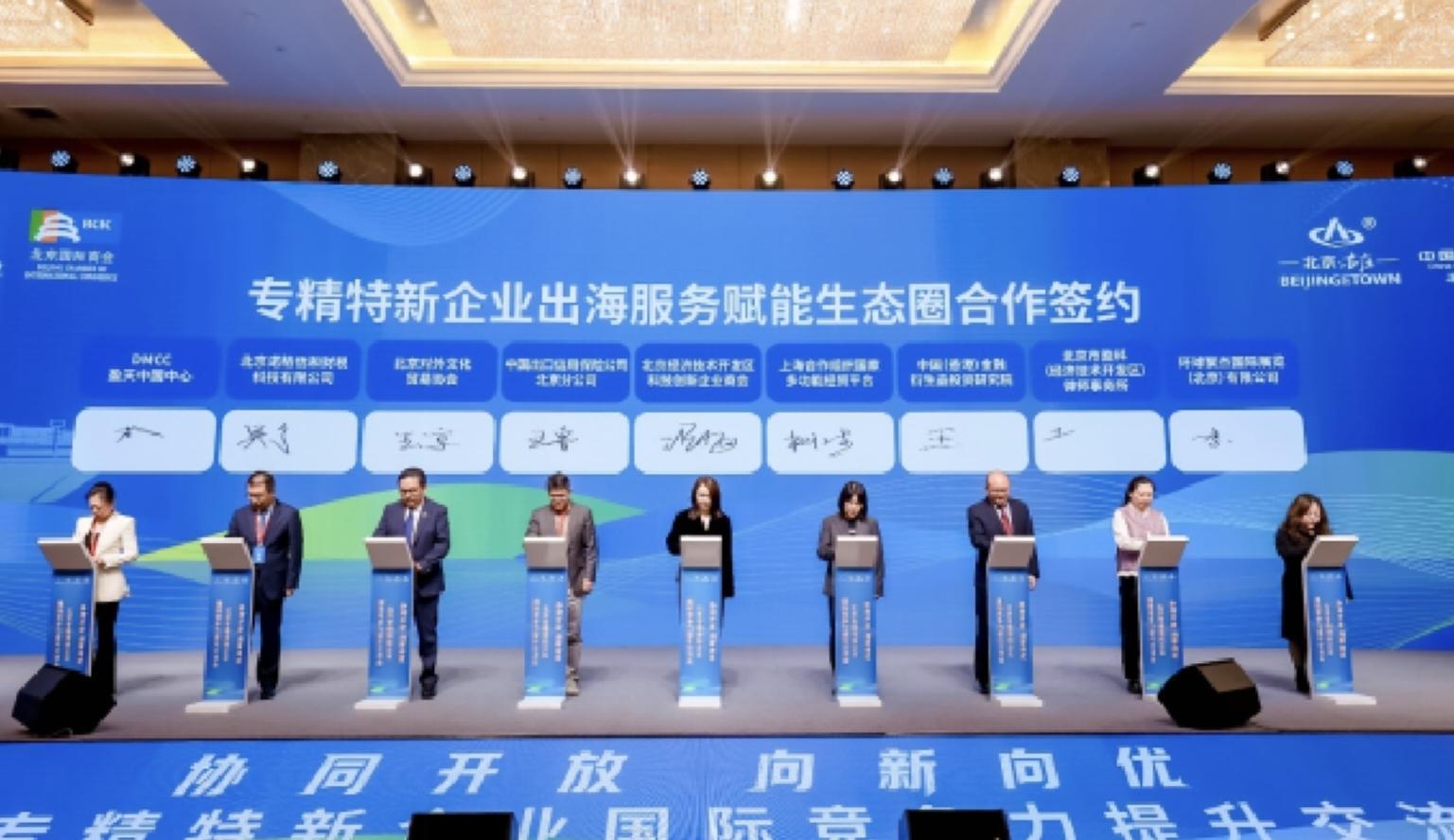 现场,北京国际商会专精特新企业专委员会揭牌成立,专委会由亦庄新城总商会团体会员亦庄科技商会联合北京专精特新企业商会、中科星图等8家商协会组织和专精特新企业代表共同发起,聚合海外专业咨询服务资源,构建起“政府引导、企业主体、市场运作”的服务新机制。同时,亦庄新城总商会团体会员亦庄科技商会牵头,联合金融机构、法律税务机构、国际商协会等多方力量共同打造专精特新企业出海服务赋能生态圈。
