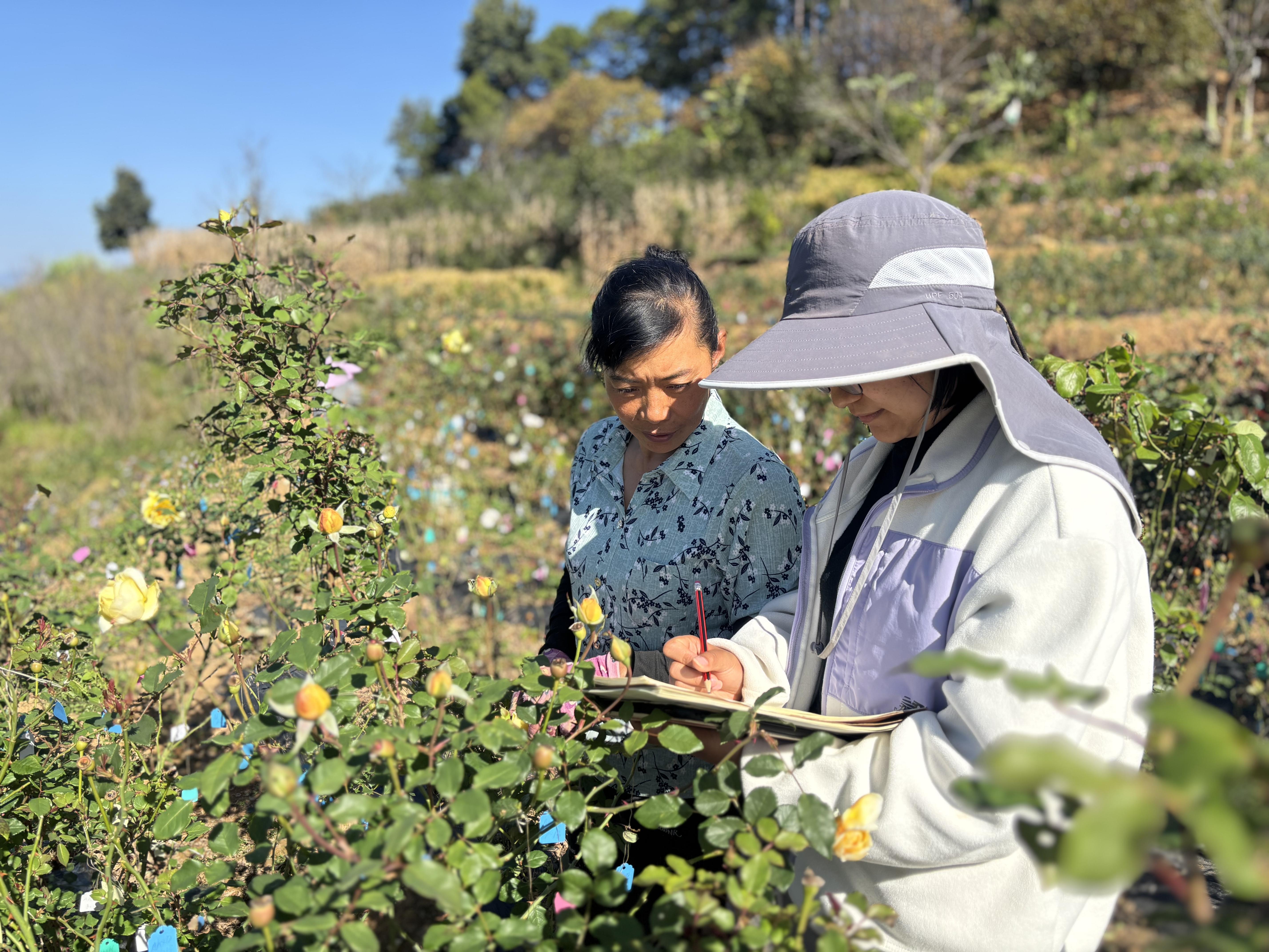 香水月季产业同样因人才创新焕发新生。李淑斌团队深耕月季种质资源收集与利用,2025年完成收集保存月季资源1000余份,累计保存野生资源1500份、品种1500个以上;完成3119组授粉组合,筛选种子80万粒,申报新品种62个,构建起品种评价与示范体系,让临沧月季在品种创新上实现新突破。
