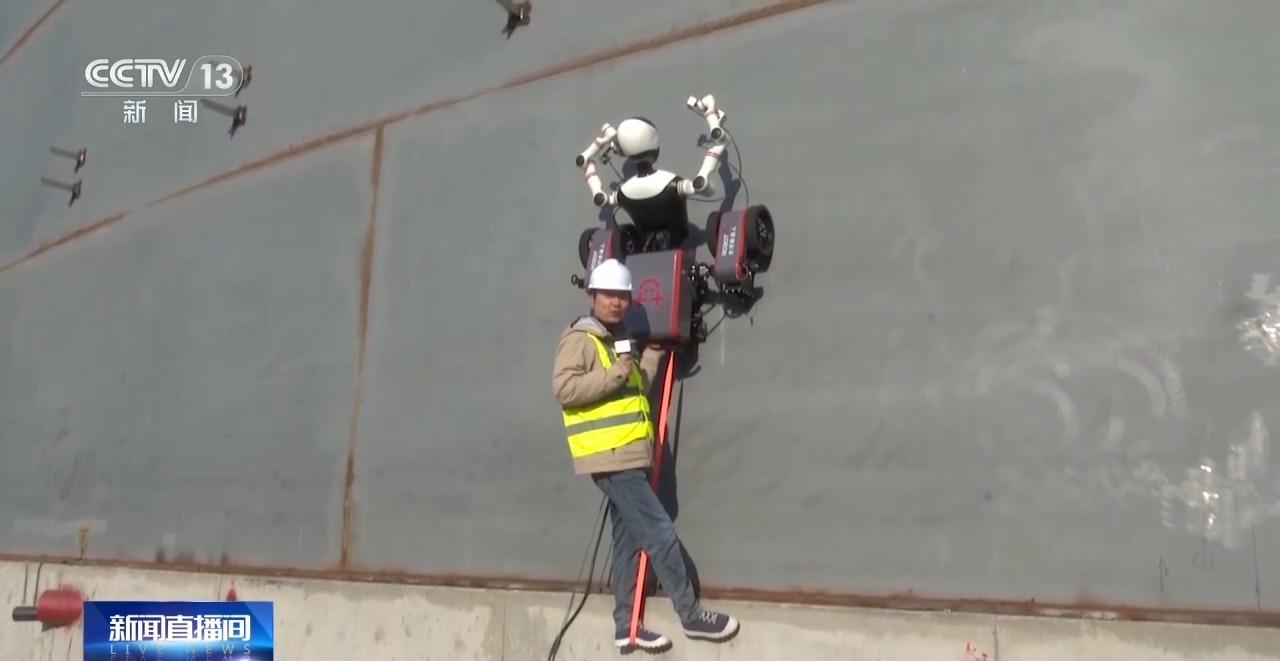 总台央视记者 古峻岭:我们现在看到的是我国首个具身智能特种机器人在作业,它如履平地的工作场景,竟然是一个垂直的墙面。