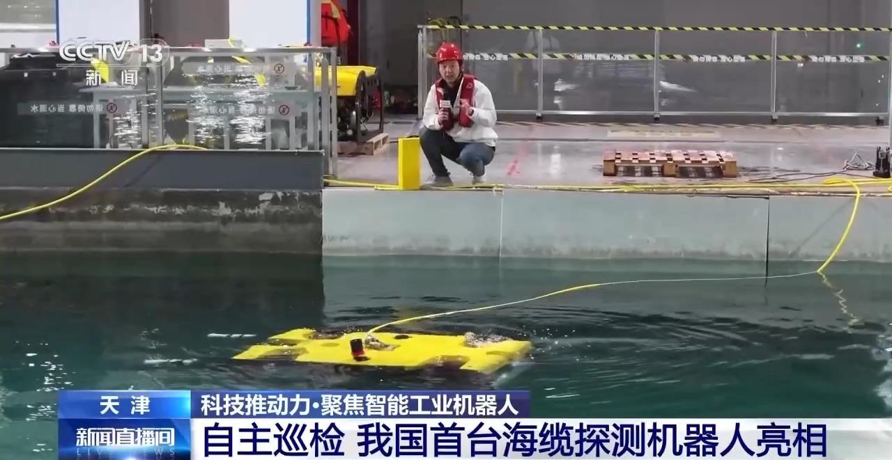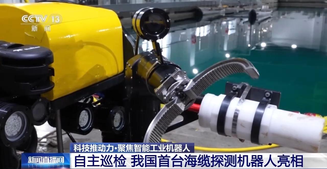 总台记者 古峻岭:这是我国首台海缆探测机器人,它有着非常鲜艳的亮黄色,在蓝色的海水中非常亮眼,它就像是一个水中的大黄蜂,本领高强。
