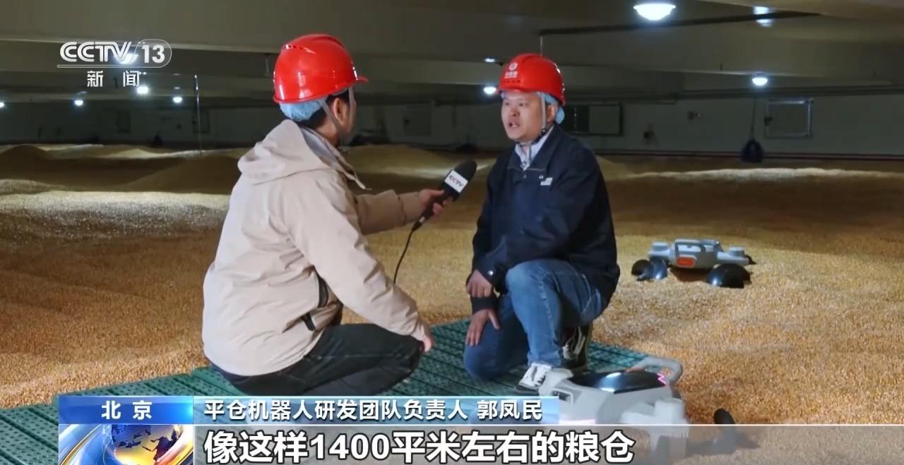 平仓机器人研发团队负责人 郭凤民:像这样1400多平方米的粮仓,传统人工平仓需要三人三天作业,同样三台平仓机器人协同平仓,不到一天就能完成。
