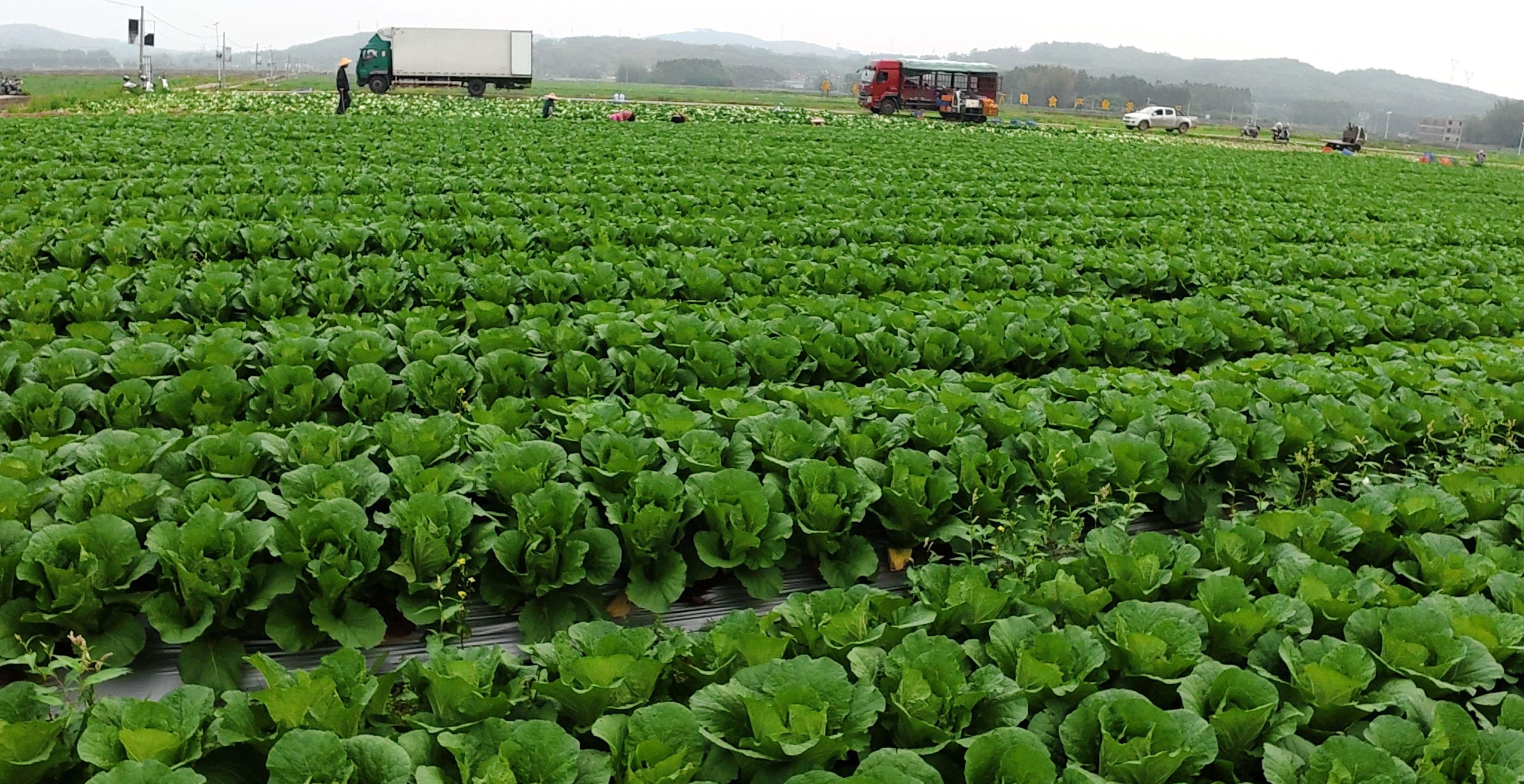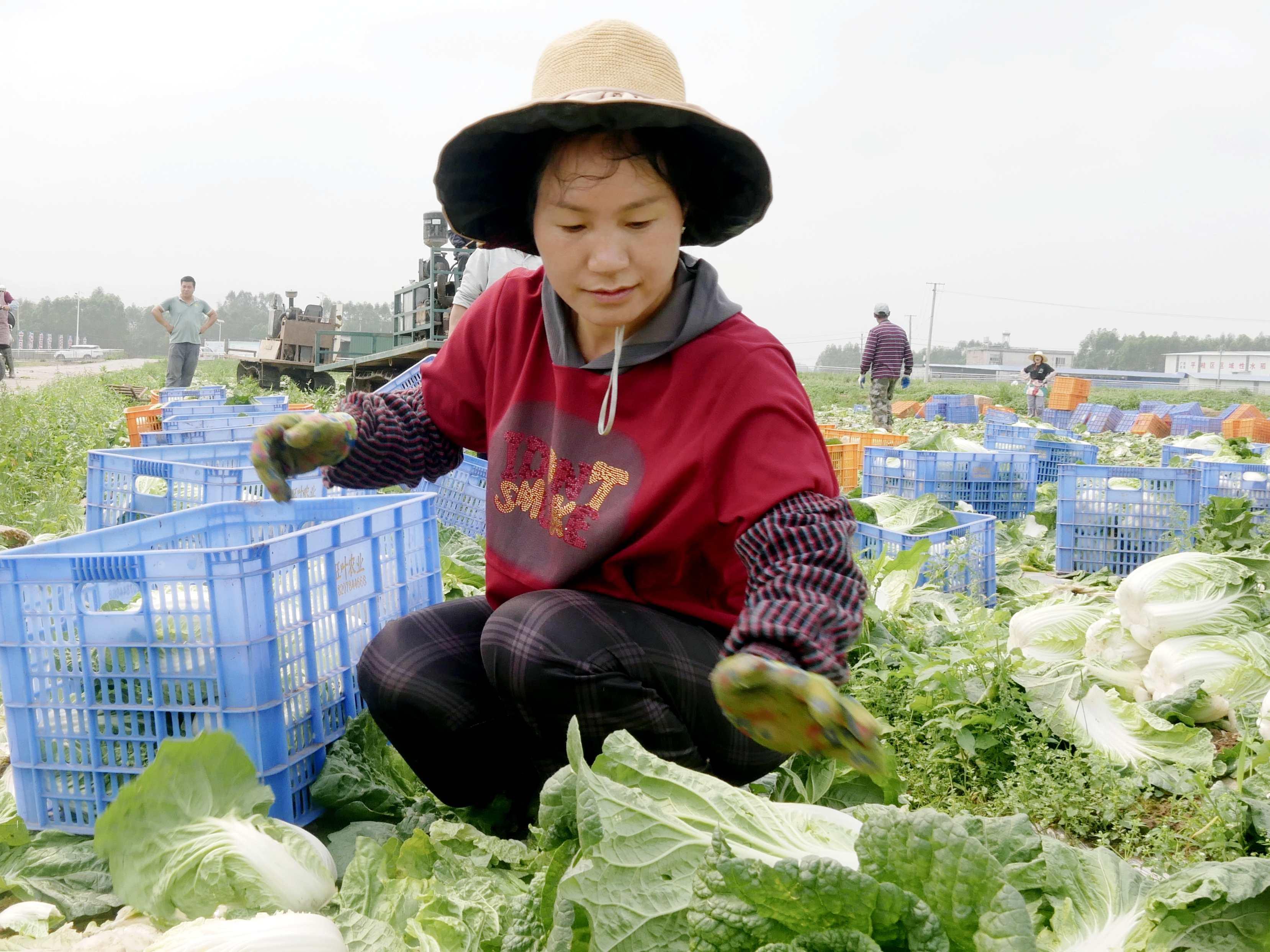 近日,广西贺州市平桂区福稻天下粮食示范区内,20余名工人正在加紧采收400多亩大白菜。