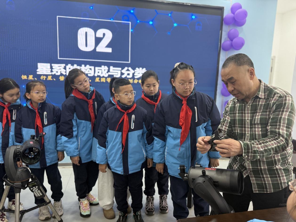 活动现场,黑龙江省摄影家协会专业摄影师结合天文常识与星空拍摄技巧,用通俗易懂的语言为孩子们细致讲解了星空摄影的参数设置、场景选择、构图思路及拍摄注意事项,用精美的星空作品展示宇宙的浩瀚与壮美。现场还架设了专业天文望远镜,在摄影师指导下,同学们轮流观测天体,近距离观察月球表面纹理、辨识星空方位,沉浸式感受星空魅力。