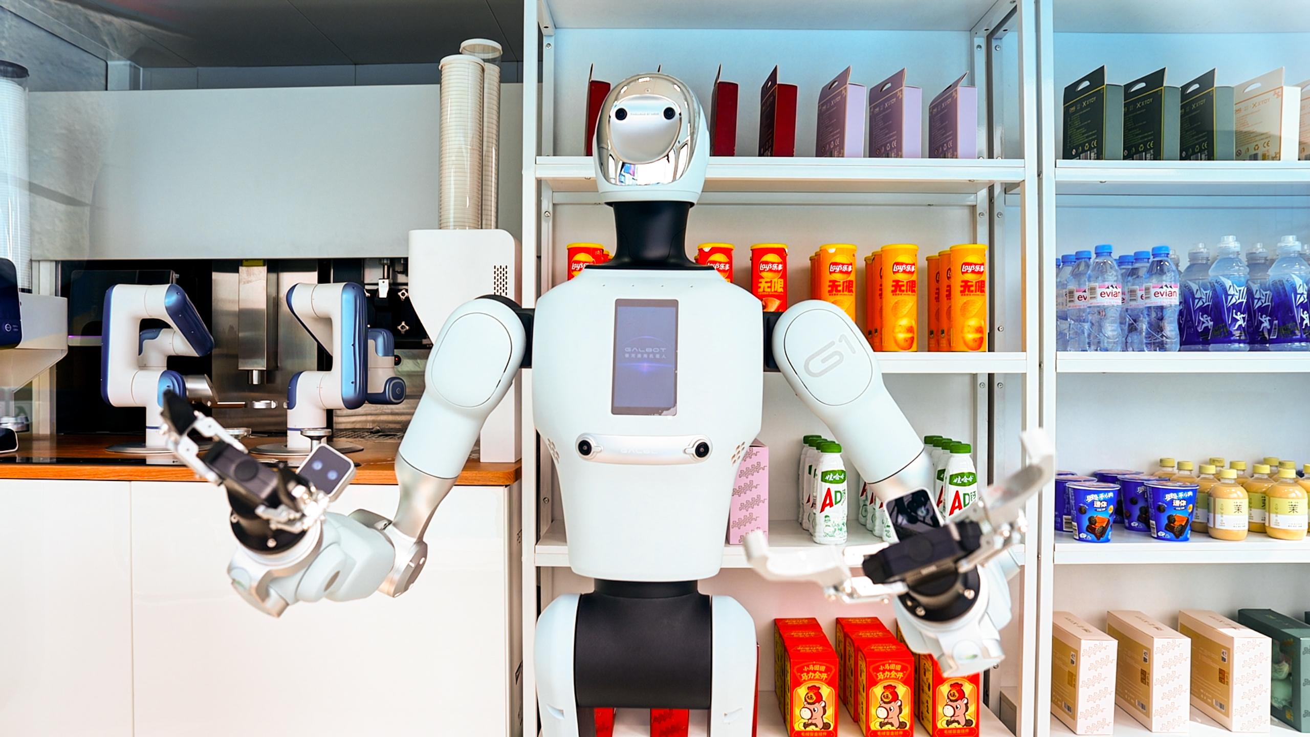 作为全球首创的人形机器人智慧零售解决方案,该太空舱采用“无遥操、全自主”运行模式,舱内的Galbot机器人依托百亿级具身智能大模型“银河星脑 AstraBrain”,具备类人化交互、学习与决策能力,可独立完成对话互动、商品推荐、精准取货、扫码支付全流程服务,能为市民游客提供咖啡、茶饮、文创产品及零食等售卖服务。
