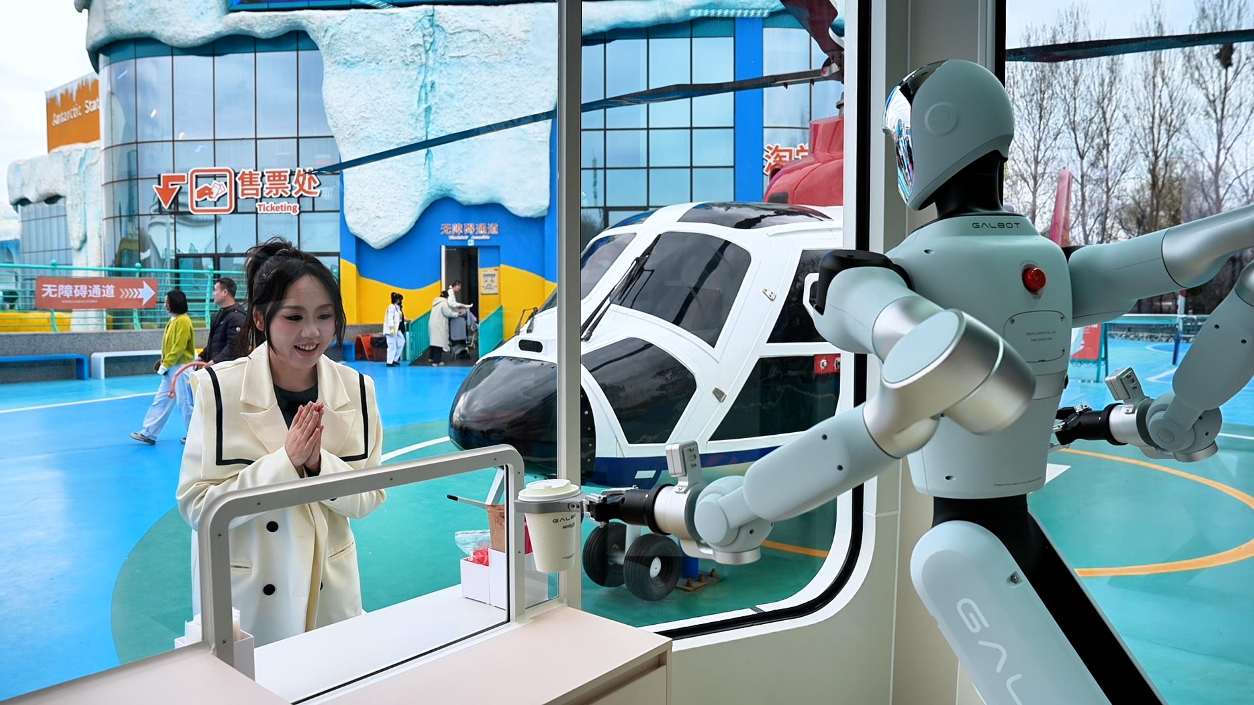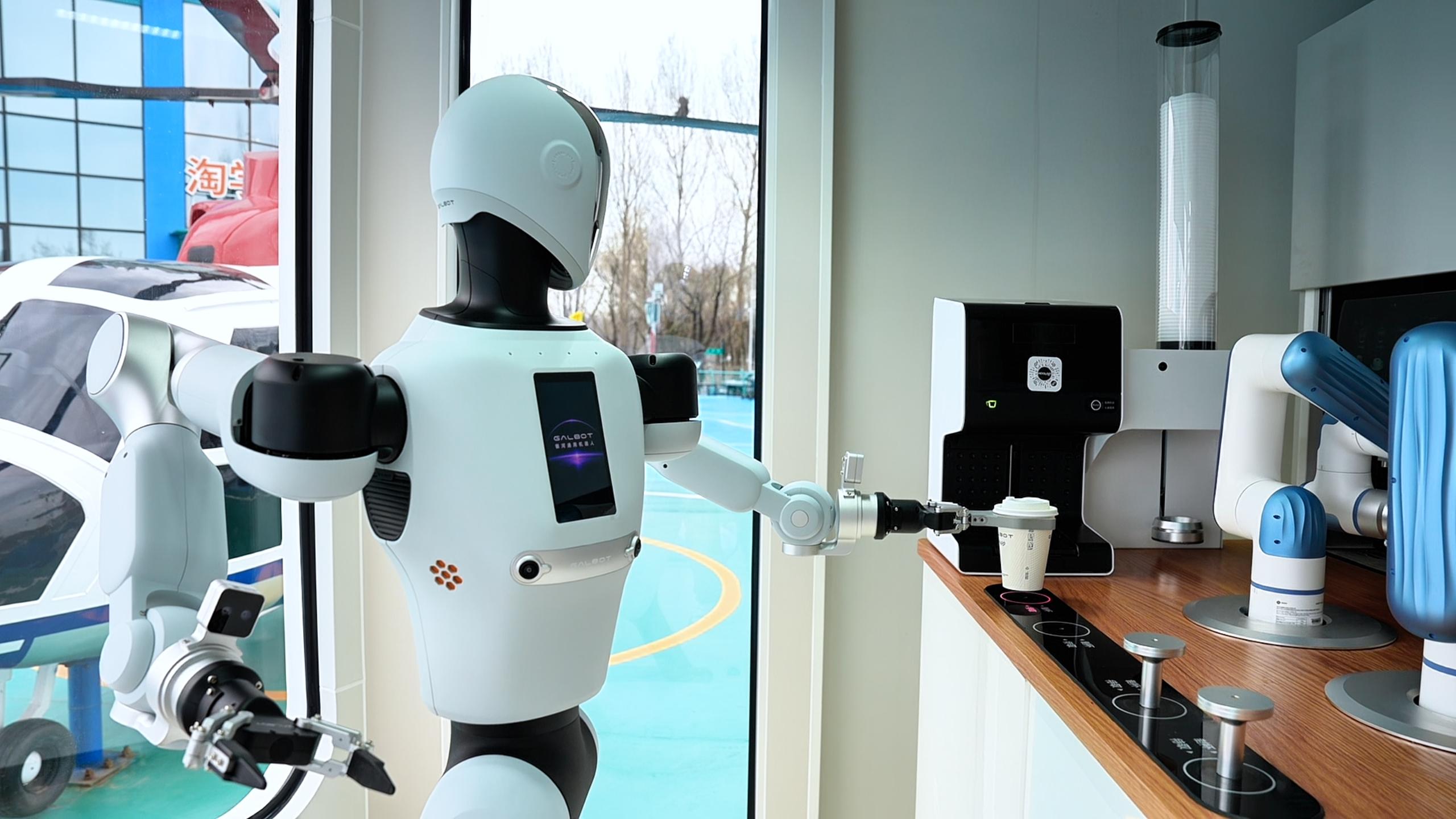 4月14日,哈尔滨新区极地公园内,一座科幻感十足的“银河太空舱”吸引了众多游客。只见游客在舱体交互屏上点击“卡布奇诺”,短短一分钟后,舱内的机器人便通过灵活的机械手从咖啡机中取出咖啡,稳稳递出,咖啡表面还印着专属的机器人拉花,萌趣又精致。这位“智能店员”正是今年央视春晚上与沈腾、马丽同台表演的银河通用机器人Galbot。