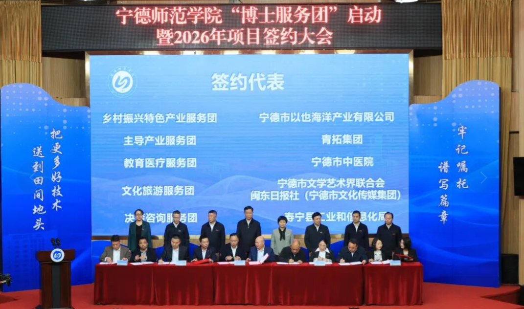 “学校主动对接区域重大战略发展急需问题,整合全校高端人才和平台资源,以产业问题为导向,坚持校地校企协同,跨学科、跨领域组建主导产业、乡村振兴特色产业等五大博士服务团。”宁德师范学院校长颜桂炀介绍,通过构建大平台、打造大团队,主动对接省市重大科技“揭榜挂帅”项目,合力攻关重大工程或重点项目难题,为宁德“抱好‘金娃娃’构建现代化产业体系”提供科技支撑。