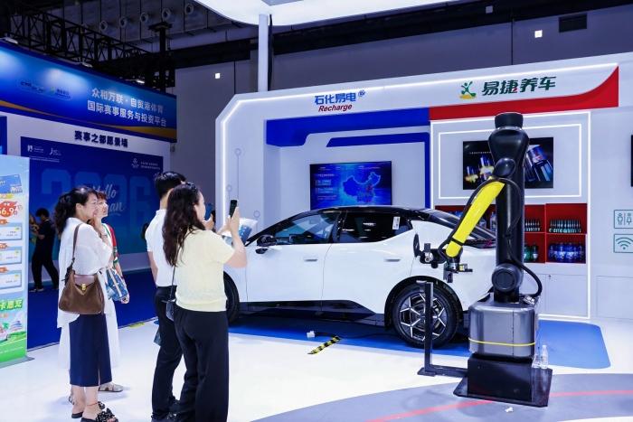 展区工作人员表示:“中国石化的多元服务环节,未来将由各类智能机器人相辅相成,值得期待。”
