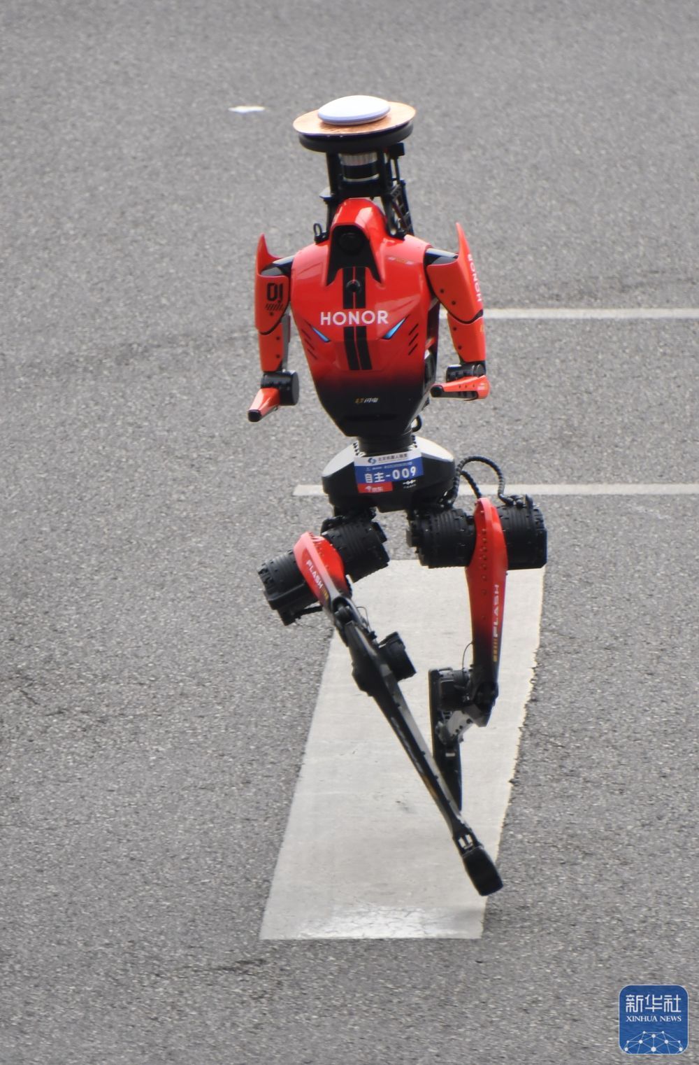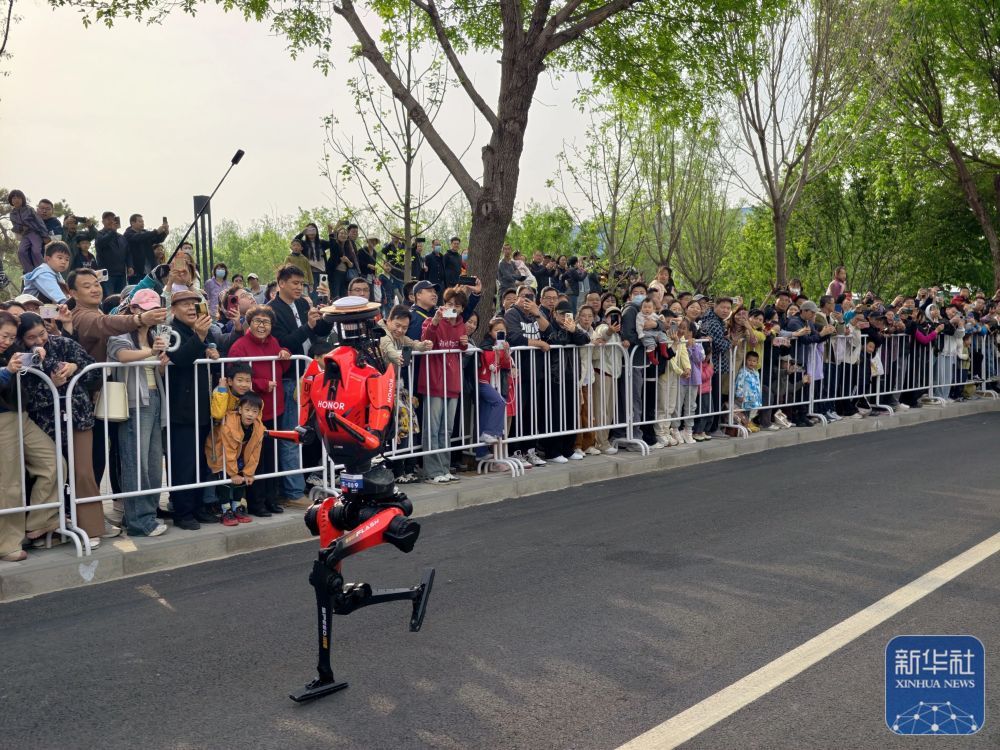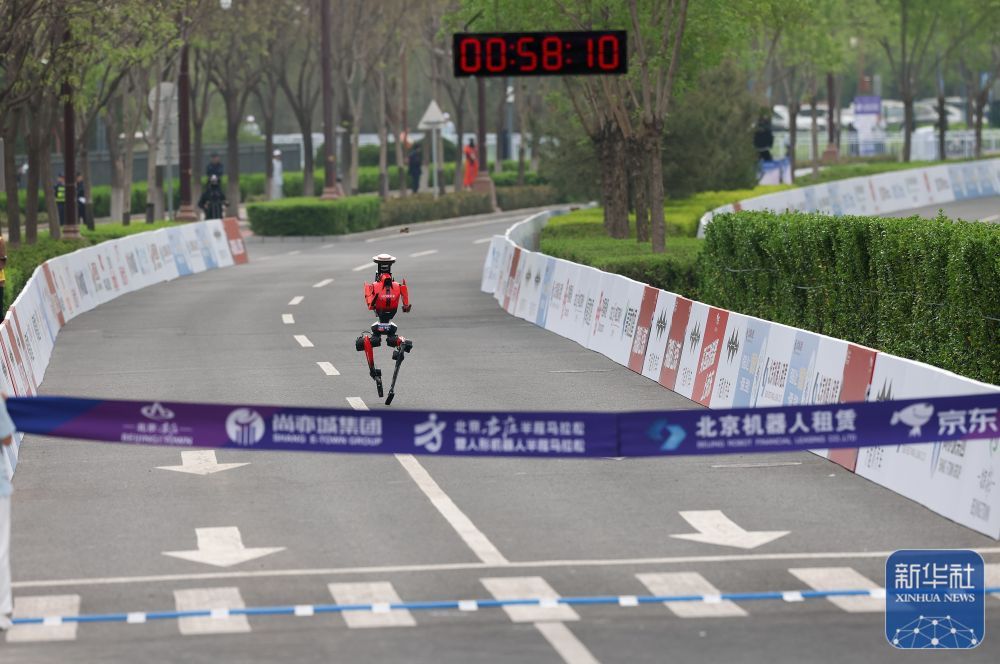 48分19秒!2026北京亦庄人形机器人半马比赛,北京荣耀遥控机器人“闪电”首个冲线