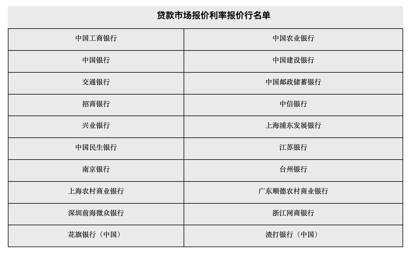 3月31日,央行发布全国银行间同业拆借中心受权发布贷款市场报价利率报价行名单称,根据中国人民银行公告〔2019〕15号要求,全国银行间同业拆借中心受权发布贷款市场报价利率(LPR)报价行名单如下: