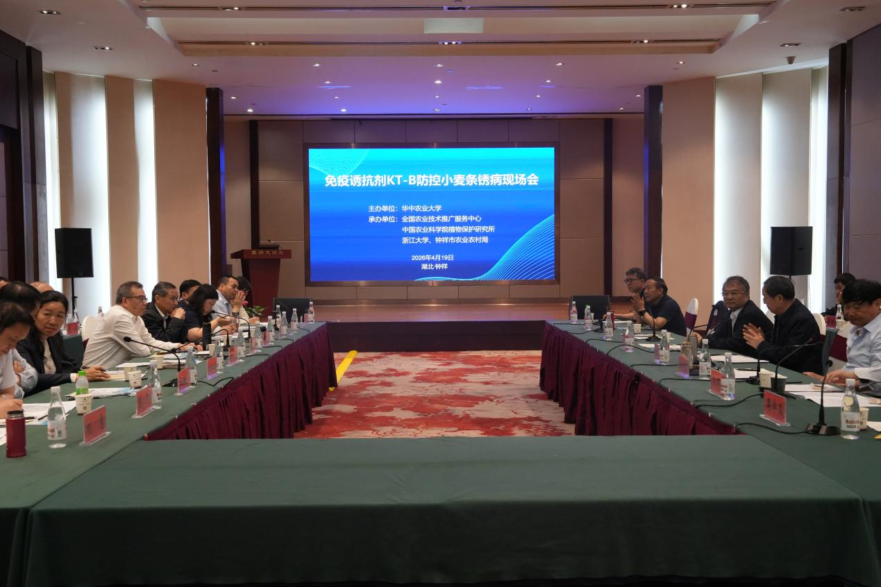 4月19日,“免疫诱抗剂KT-B防控小麦条锈病”田间现场观摩会在湖北省钟祥市石牌镇荆台村举行。