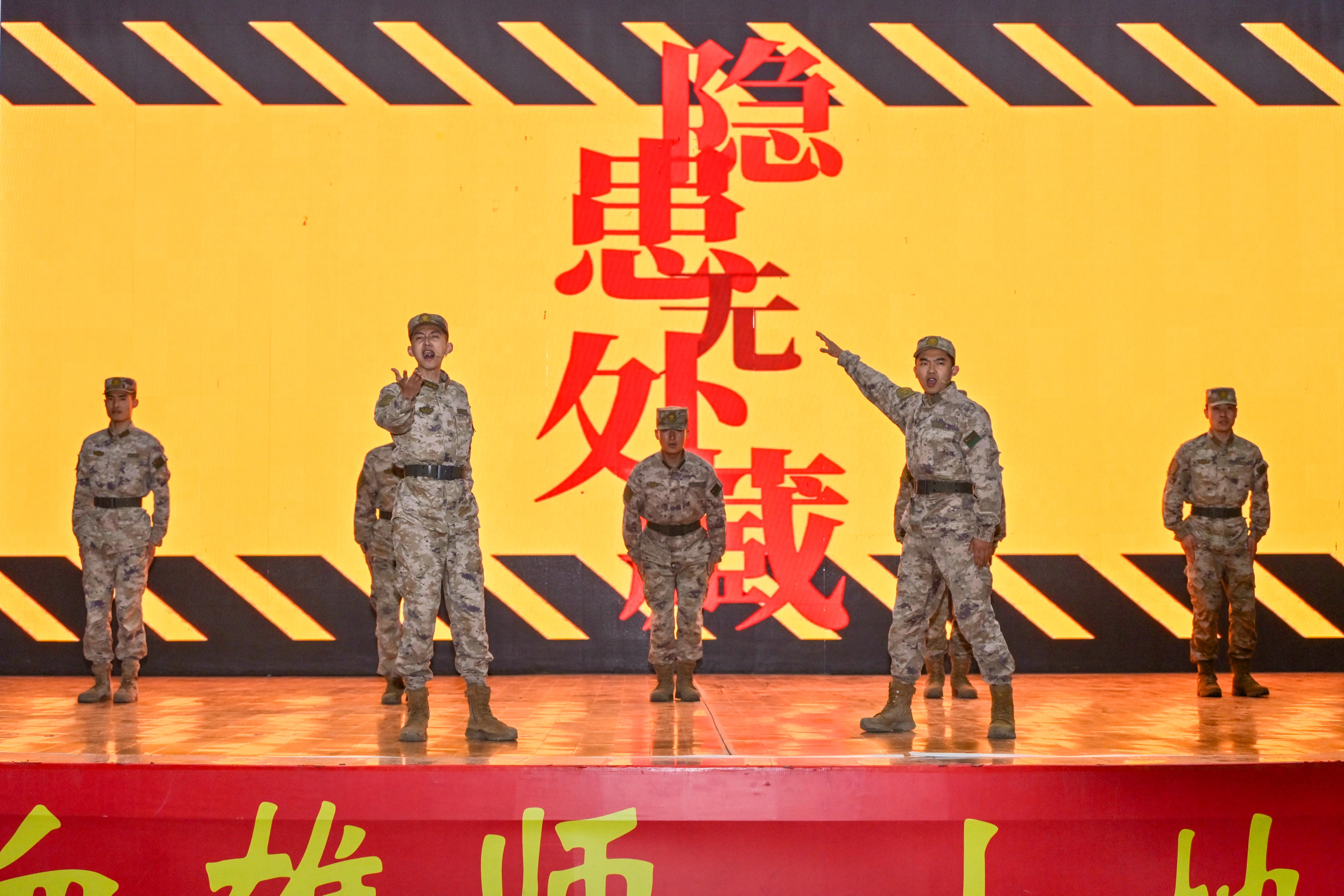 晚会还围绕防溺水、防火灾、防触电、防中毒、防泄密等内容,推出了相声《一拍即合》、舞蹈《一往无前》等创意节目,号召官兵群策群防、共筑安全防线。说唱《一言到底》节奏动感、韵律十足,唱出了官兵对安全的理解,将现场气氛推向高潮。