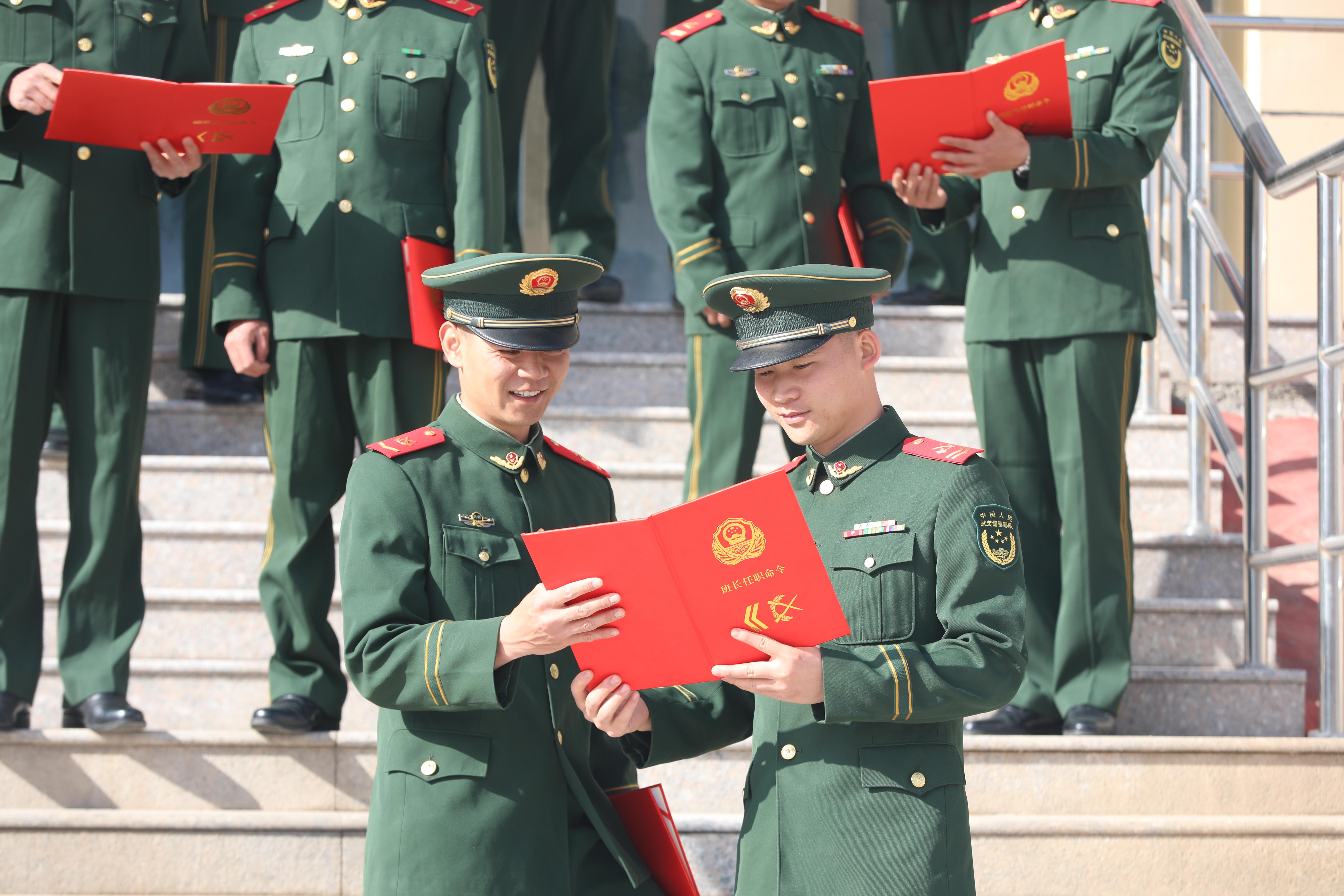 一纸任命、一份担当,仪式现场庄重严肃,新任职班长接过命令,也扛起了基层带兵的重任。大家纷纷表示,将牢记职责使命,扎根边疆、履职尽责、精武强能、用心带兵,以过硬作风和实干实绩回报组织信任,在强军新征程上担当作为、建功立业!