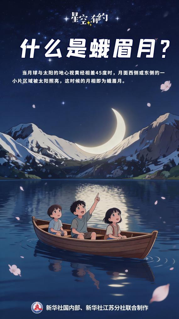 什么是蛾眉月?中国科学院紫金山天文台科普主管王科超介绍,人们在地球上看到的月亮“相貌”随着日、地、月相对位置变化而改变。当月球与太阳的地心视黄经相差约45度时,月面西侧或东侧的一小片区域被太阳照亮,这时候的月相即为蛾眉月。蛾眉月呈现类似柳叶的纤细形状。