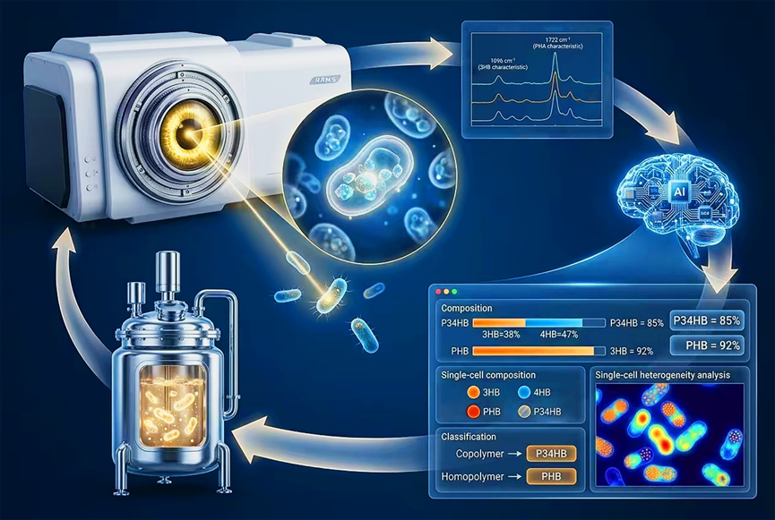 作为封闭的生物反应器,发酵罐可合成各种生物聚合物。如何穿透这个黑箱实时监测细胞的代谢功能,长期困扰着生物制造行业。针对细胞中生物聚合物含量与单体组成等关键代谢指标,传统过程分析手段通常需要从罐中取样、送回实验室,经过烦琐的前处理和色谱/质谱分析后才有答案,滞后严重。而且,这些滞后的数据通常检测的是数百万细胞的群体平均值,无法精确鉴别各个细胞代谢亚群乃至单个细胞的真实贡献。