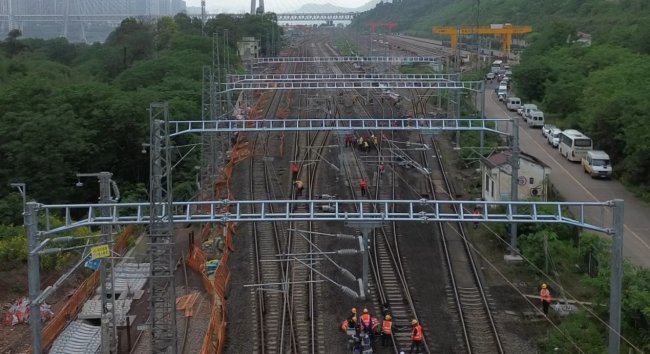 施工当日,各专业工种高效协同,密切配合,现场200余名作业人员分工明确,有序推进各项作业。接触网施工完成黄磏站孤岛及两端咽喉区接触网调整,并配合运营单位完成10个锚段接触网平推验收;信号施工完成室内计算机联锁系统、智能电源屏、信号集中监测系统、道岔缺口监测系统、机房综合保护机柜的开通启用,室外同步启用信号机、道岔、轨道电路等设备,并配合重庆电务段完成联锁校核作业;通信施工完成新建黄磏站传输、接入网、数据通信网、有线调度通信、综合视频监控、综合布线、电源设备、无线列调、电源及设备房屋环境监控9个系统启用,全力保障信号通道顺利开通。