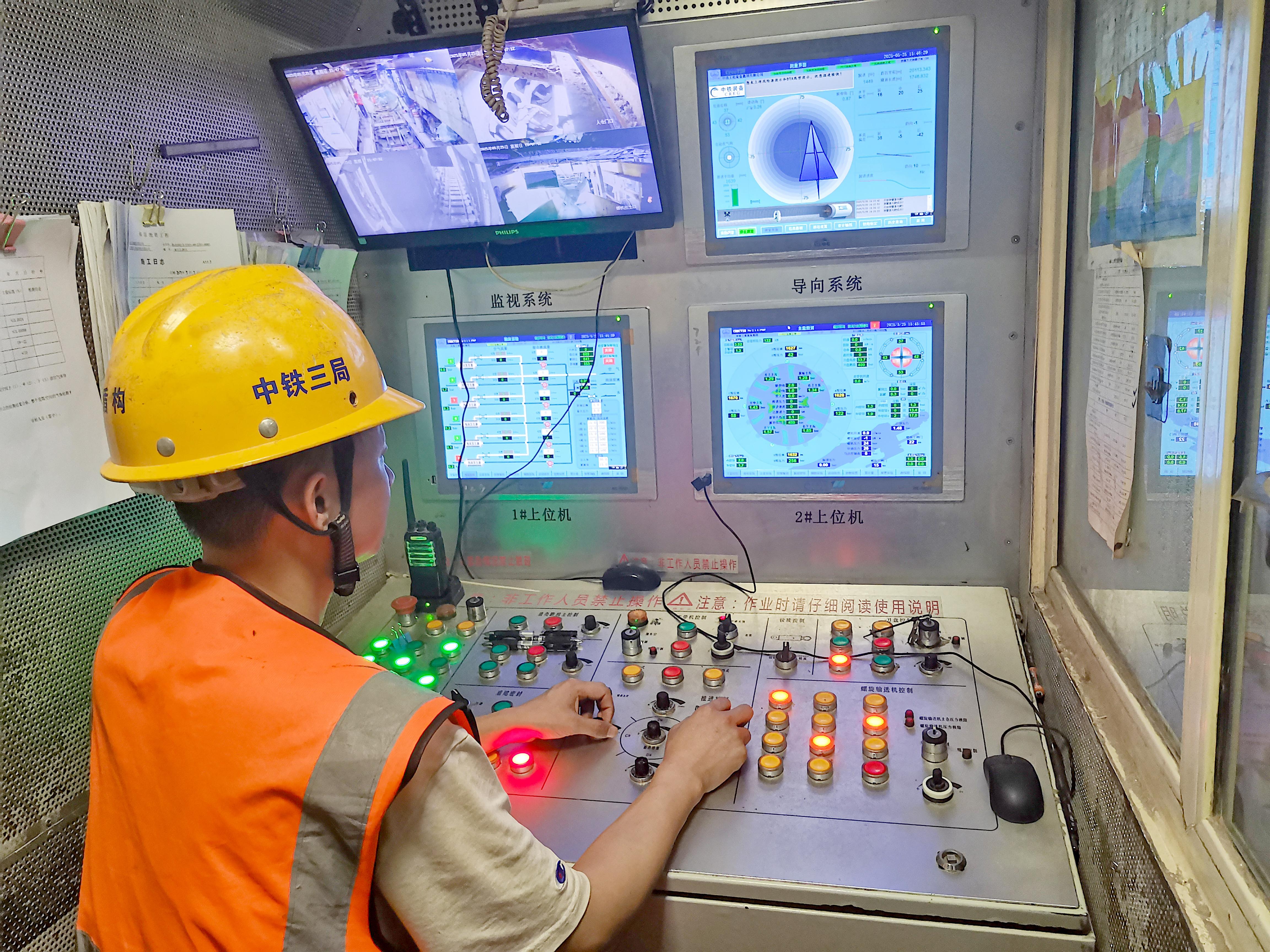 由于地质原因,盾构机在掘进中刀具磨损极为严重,需“带压开仓”更换磨损刀具。项目部严格执行“带压开仓”作业16道工序标准,克服作业空间狭小、带压作业风险高等诸多困难,从严落实各项安全管控要求,累计完成“带压开仓”作业171次,更换各类磨损刀具118把,保障了盾构机掘进连续平稳推进。同时,项目团队积极推进工艺创新,在盾构机土仓内加装辅助搅拌棒,有效缓解了孤石堵塞盾构机土仓的问题,大幅减少开仓换刀次数,提高了施工工效,顺利完成盾构施工助力工程建设高质量推进。此外,项目团队还广泛应用信息化与智能化手段,借助BIM(建筑信息模型)技术优化机电管线排布,提升一次安装合格率,保障铁路信号系统精准高效运行。